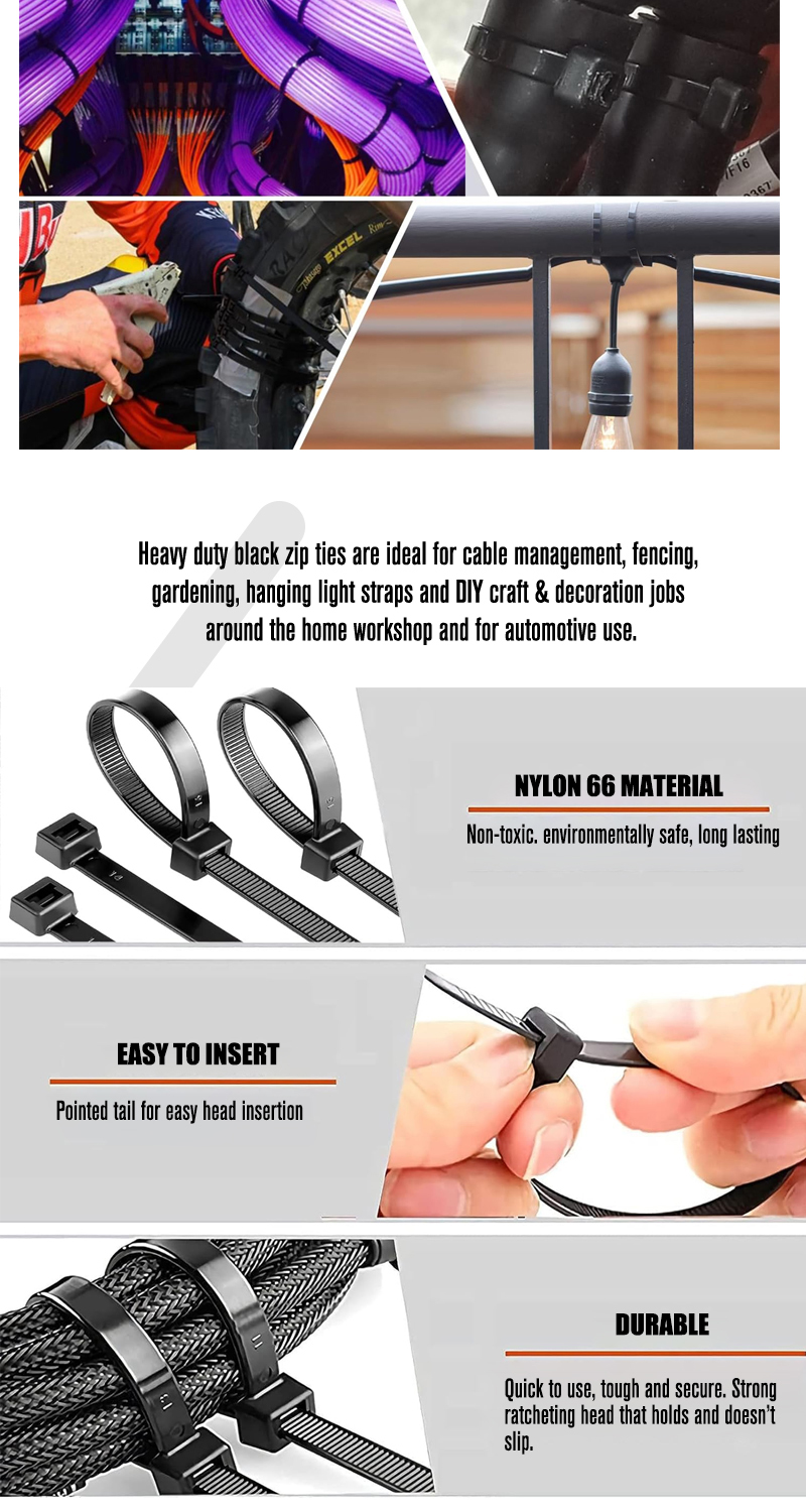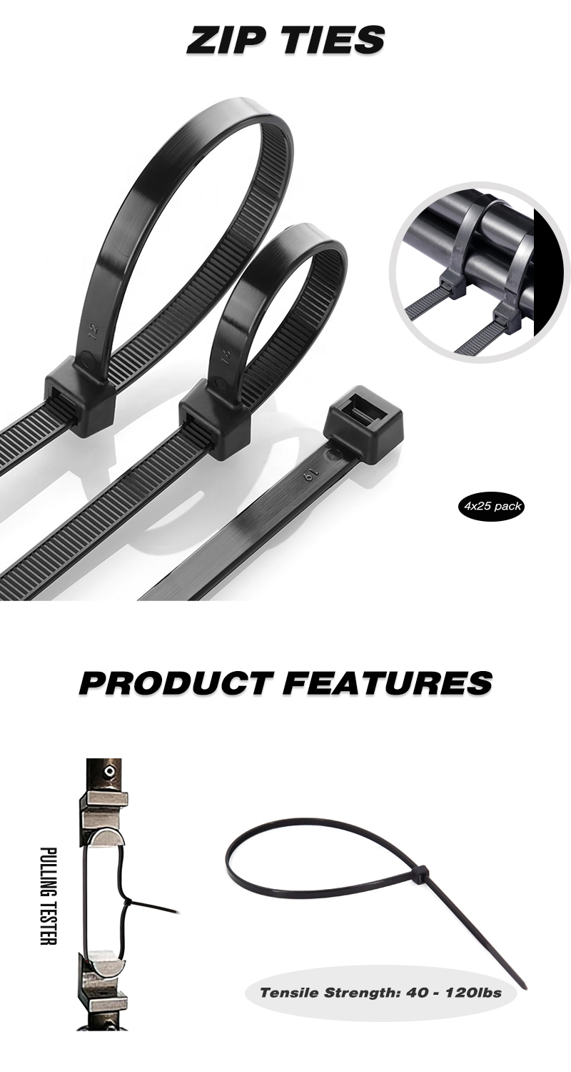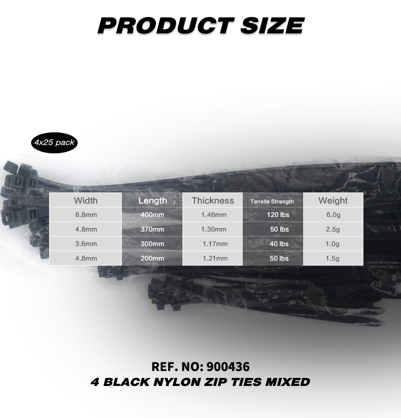 100 Pieces Heavy Duty 4 Black Nylon Zip Ties mixed Industrial Strength Cable Ties