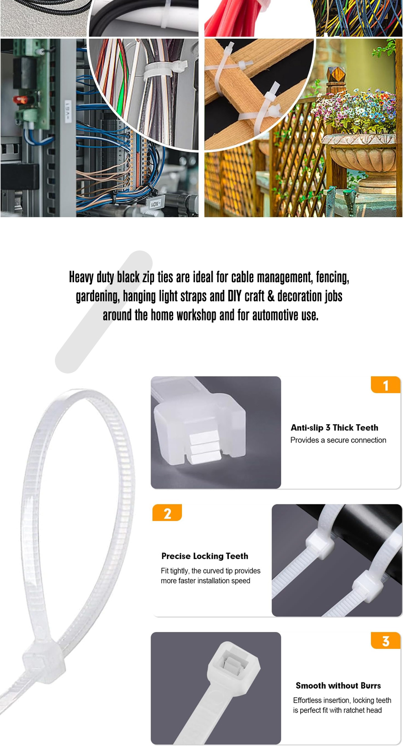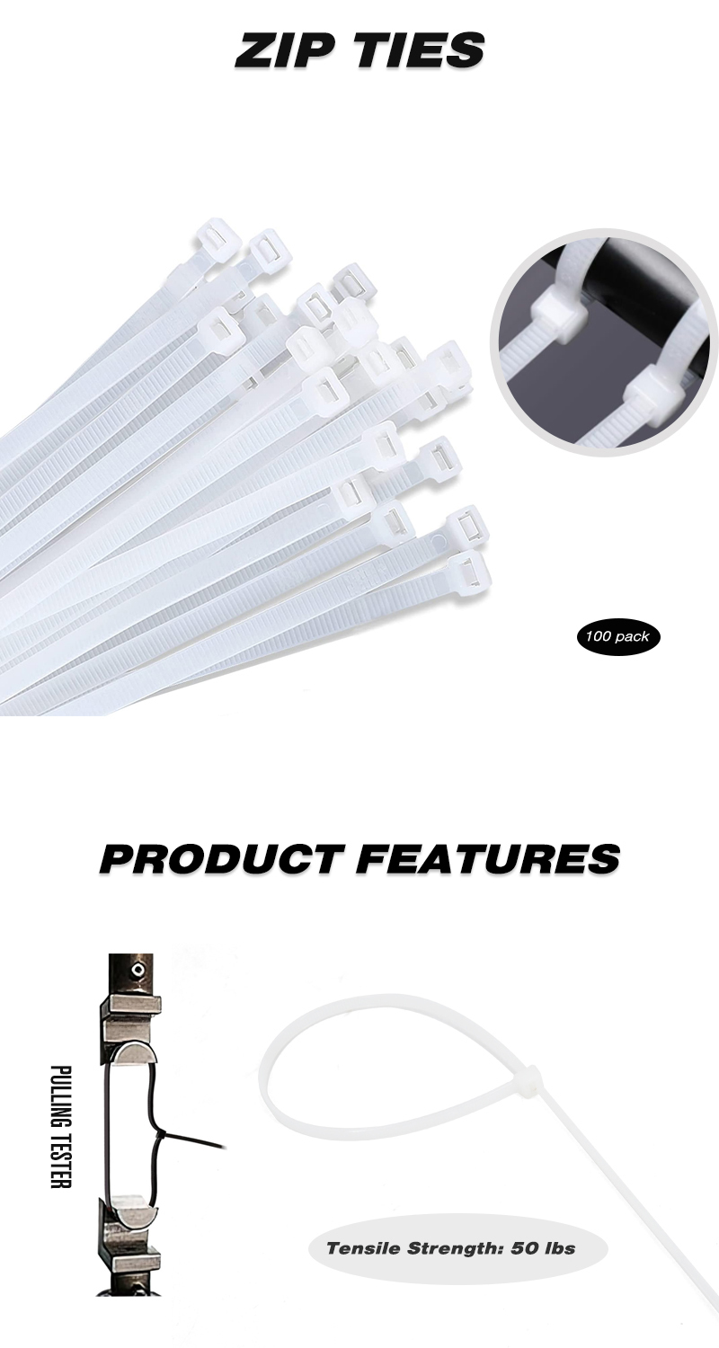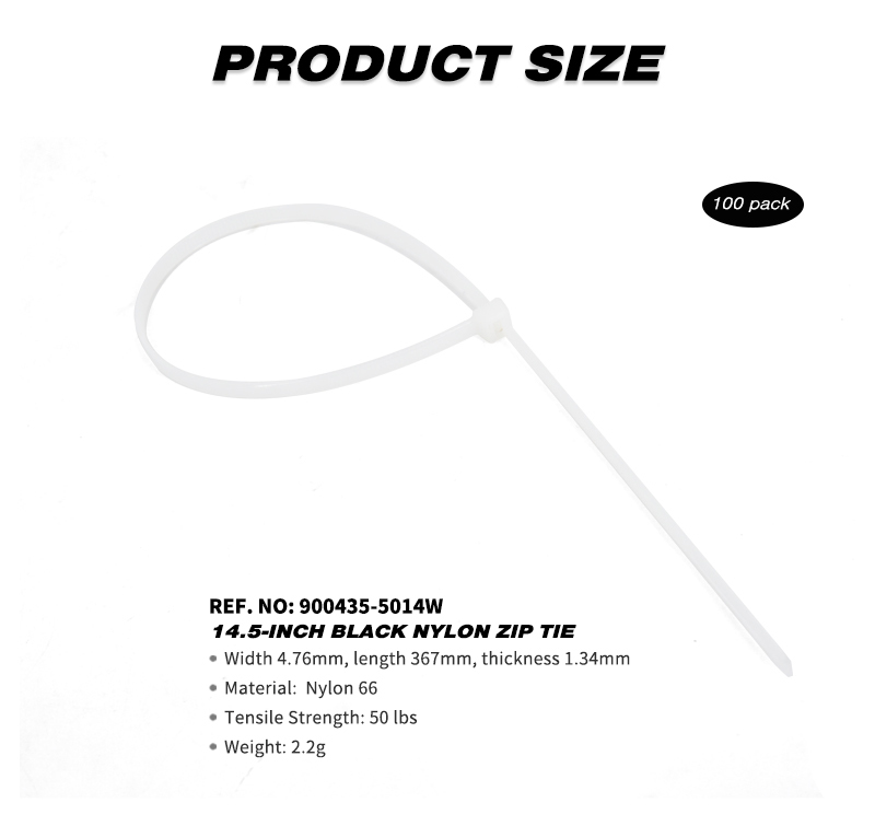 100 Pieces Heavy Duty 50lbs 14.5-inch White Nylon Zip Ties Industrial Strength Cable Ties