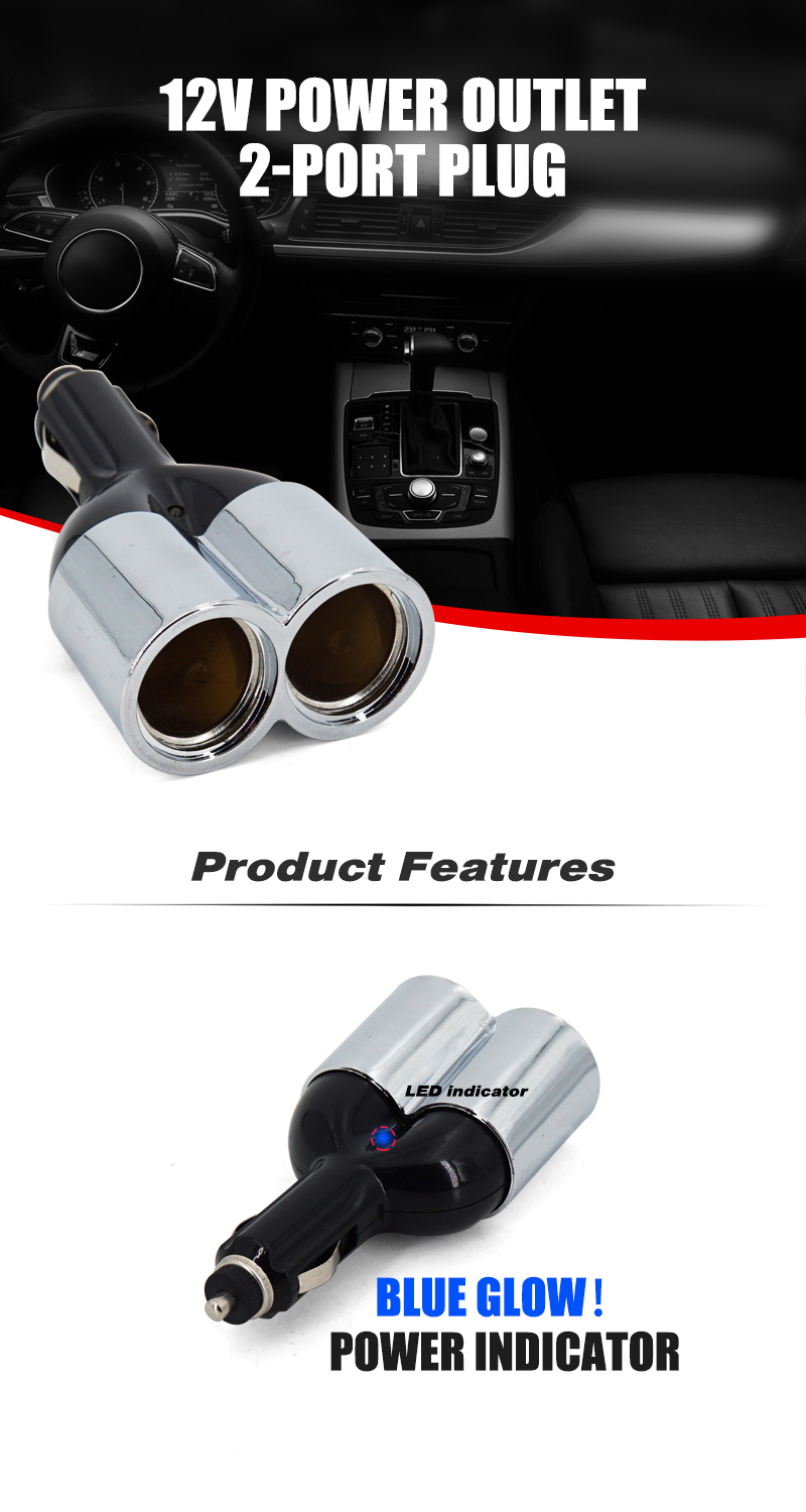 12v Power Outlet 2-Port Plug Socket Cigarette Lighter Splitter