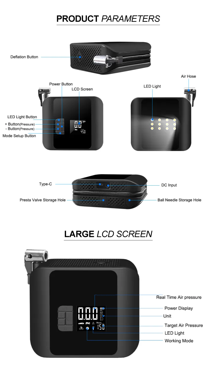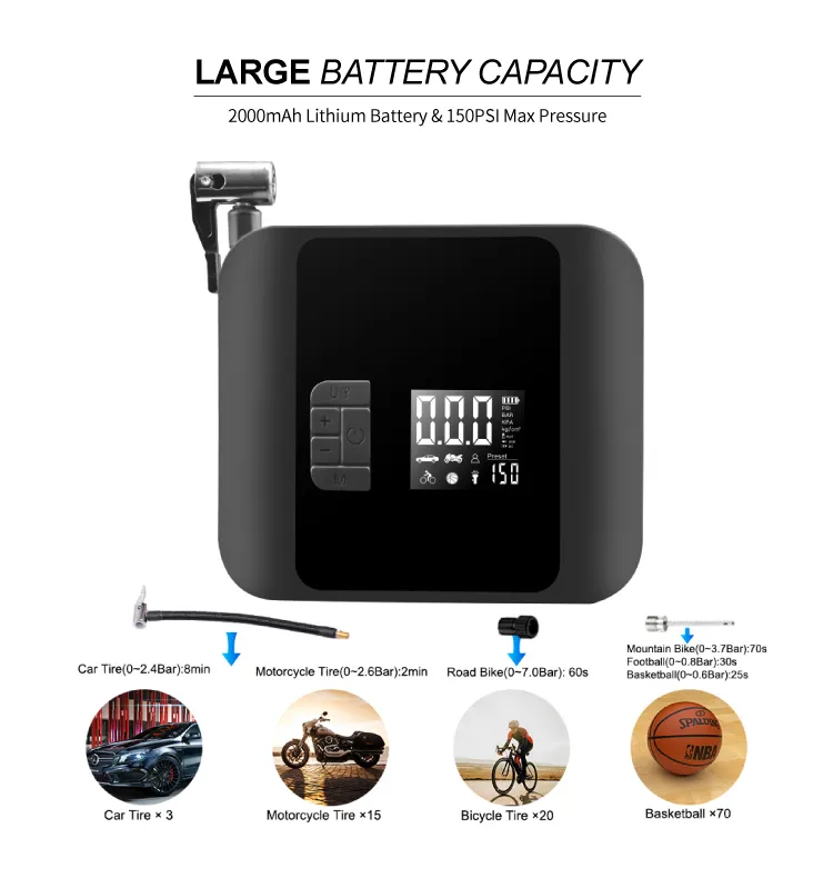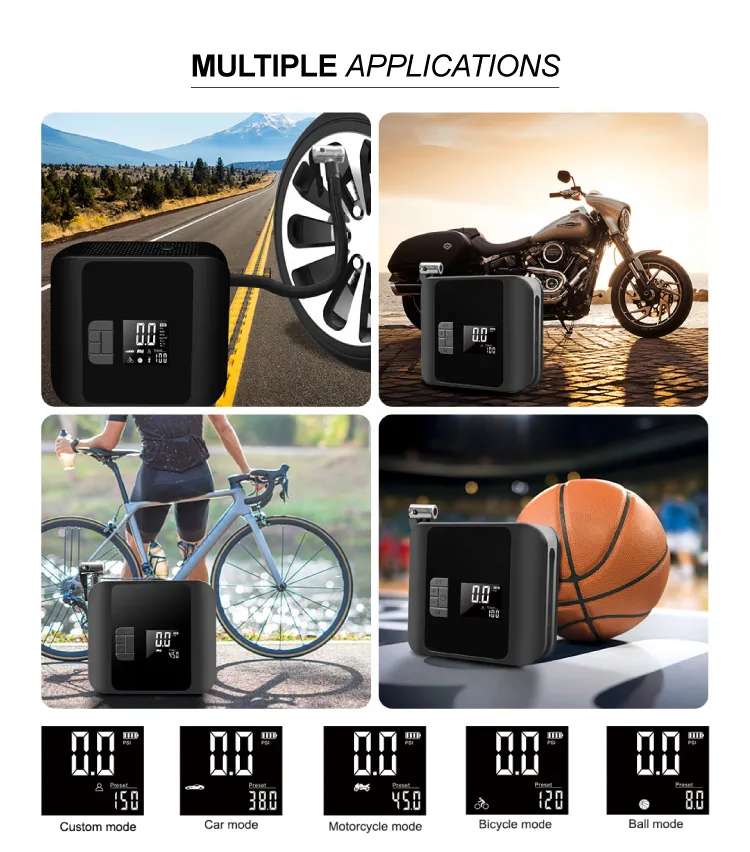 12V Wireless Cordless Rechargeable Digital Display Tyre Compressor Tire Inflator for Car/Bike/Balls