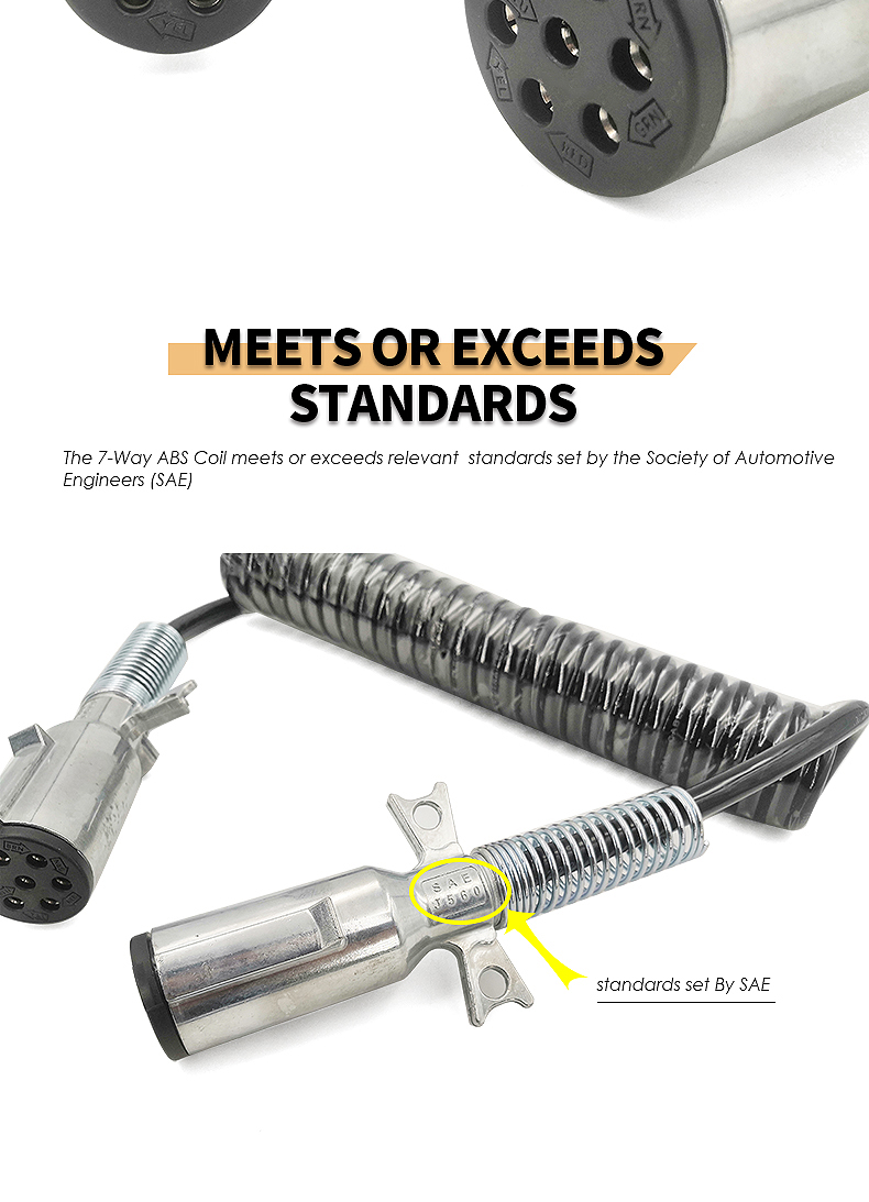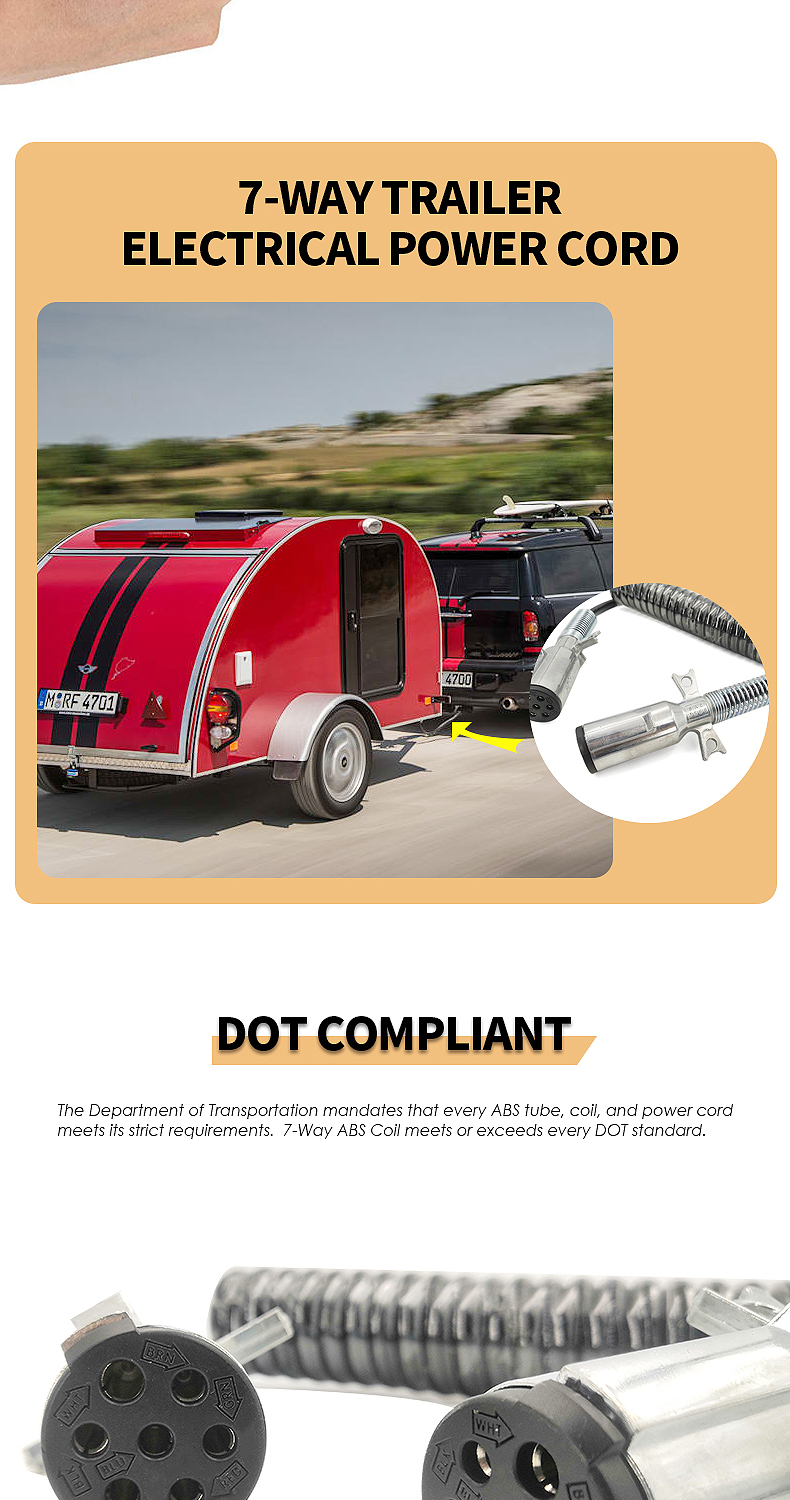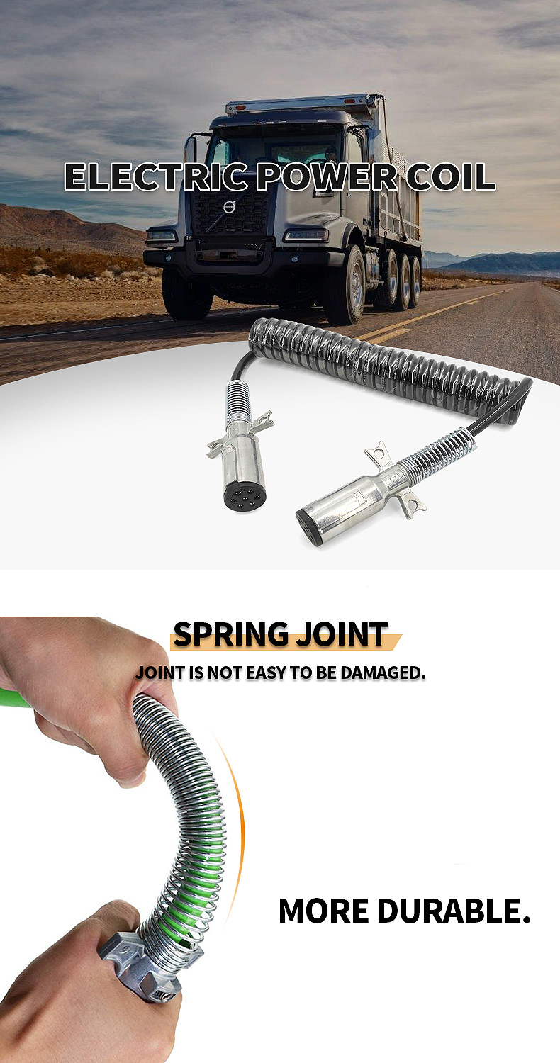 15ft Black Electrical Coil Leads Trailer Electrical Power Cord