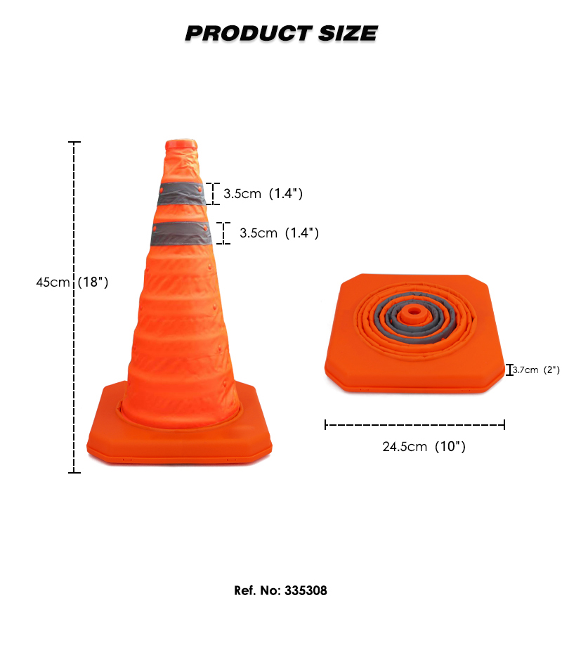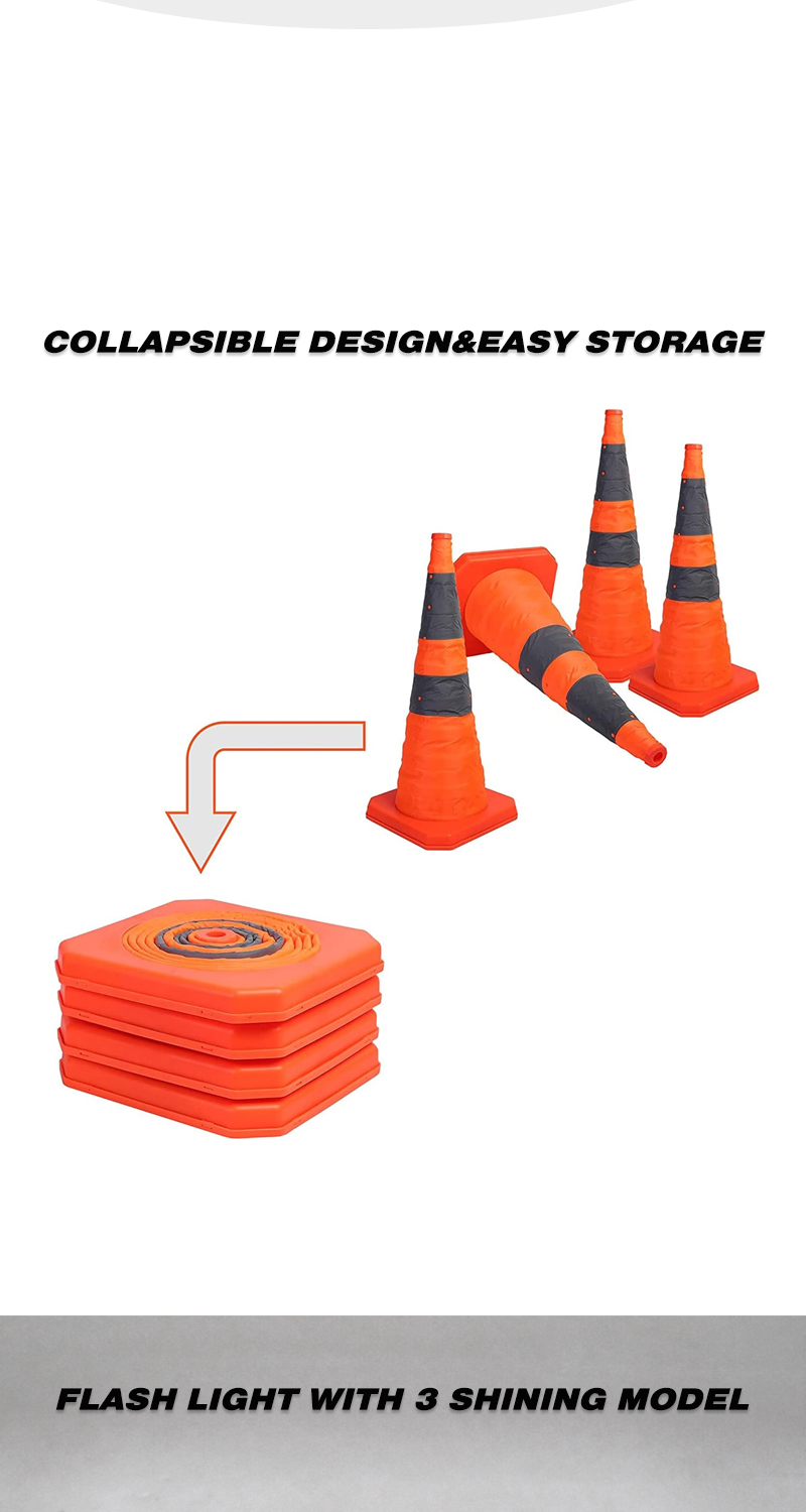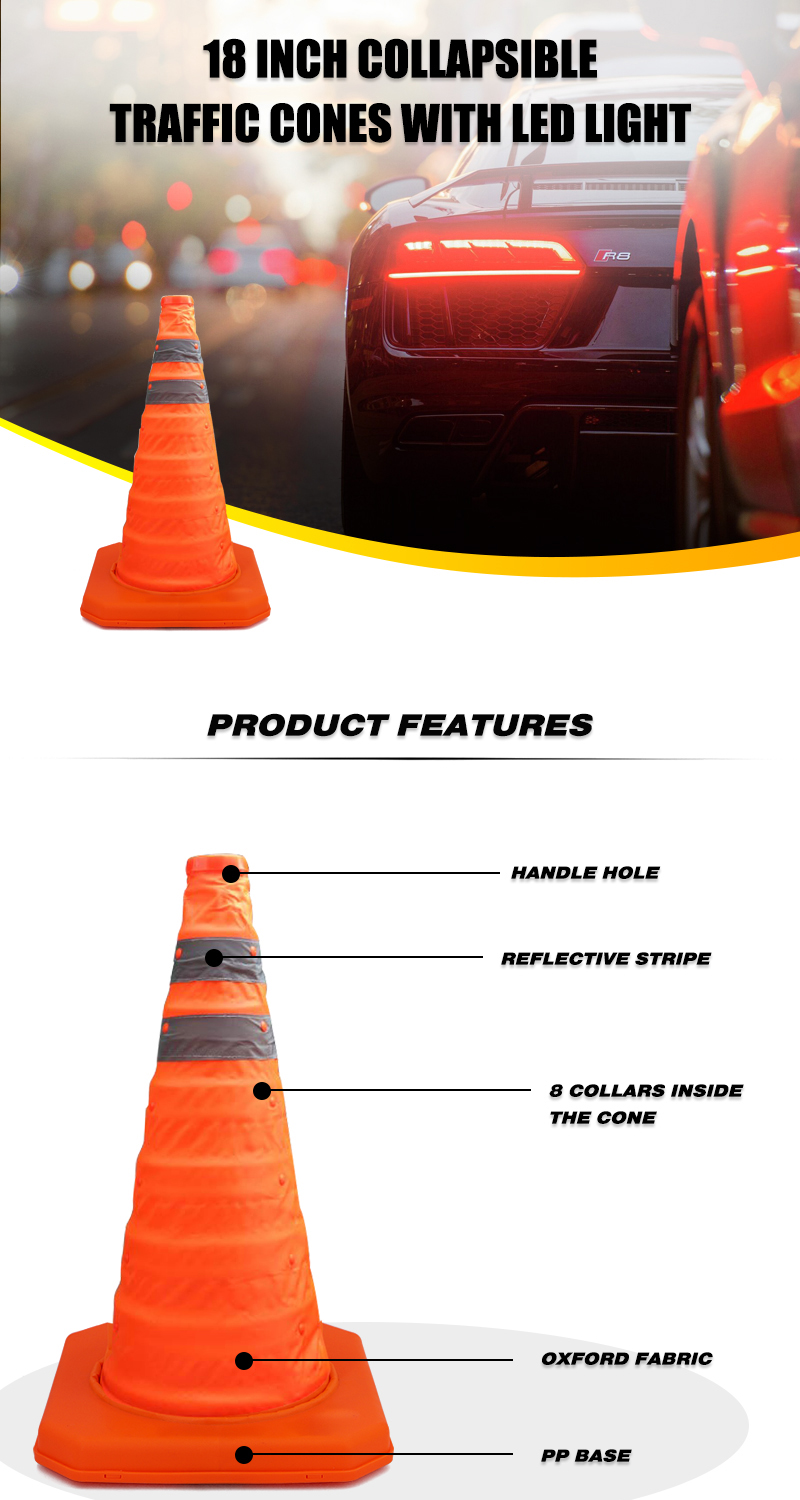 18 inch Collapsible Traffic Cones with LED Light Safety Cones with Reflective Collars