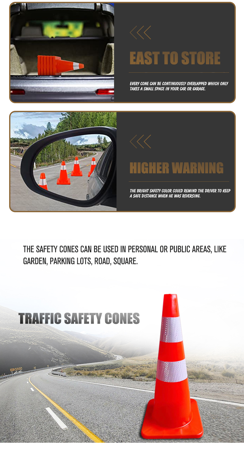 28 Inch Traffic Safety Cones with Reflective Collars PVC Orange Construction Cone for Home Road Driveway Parking