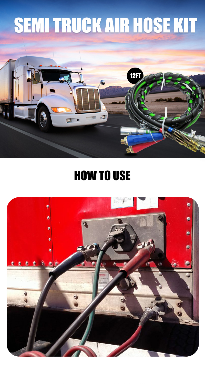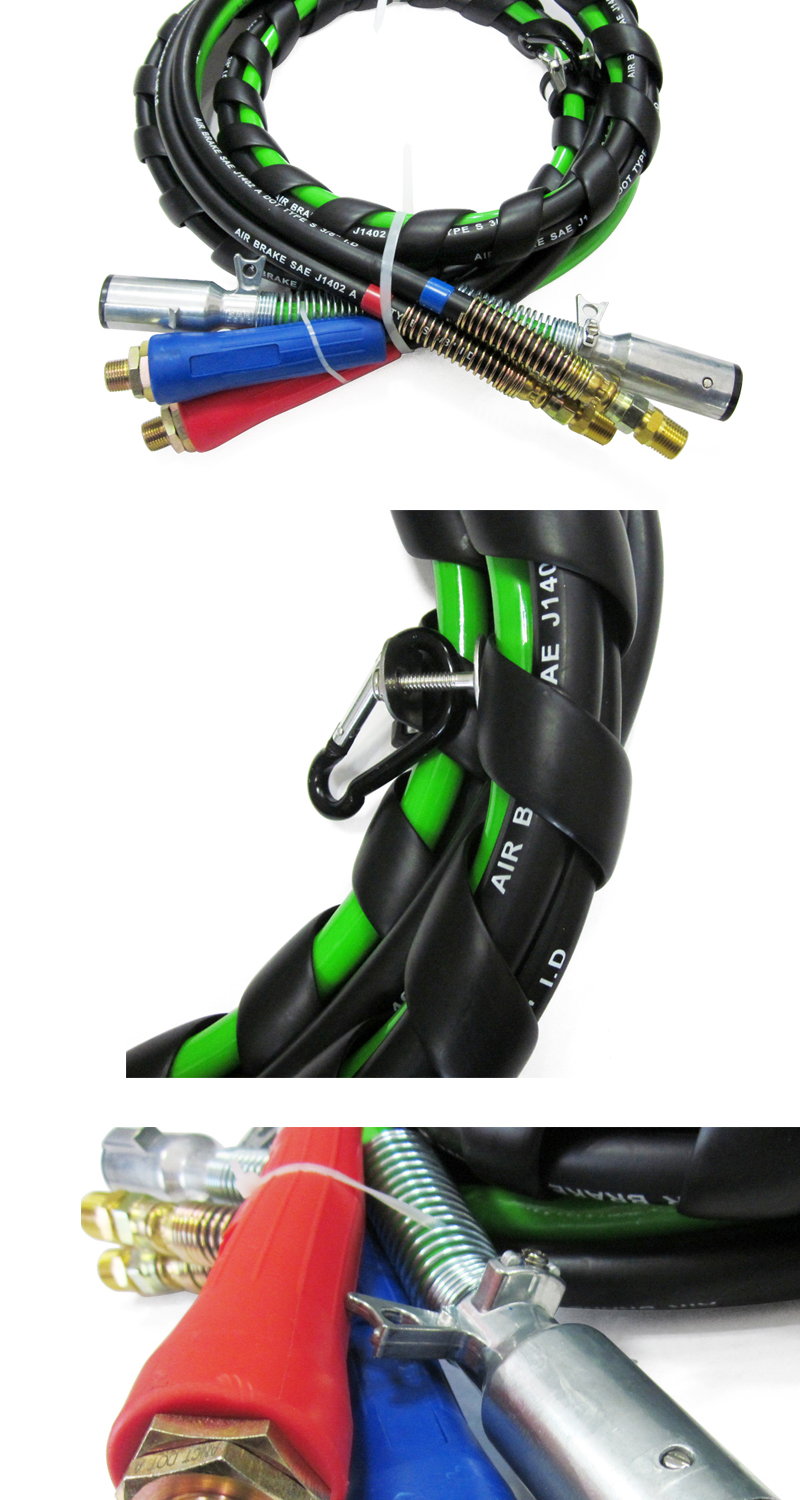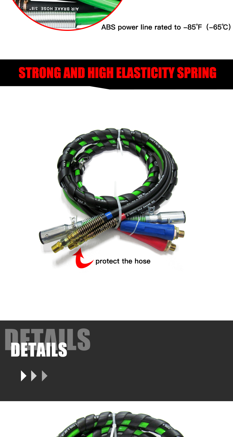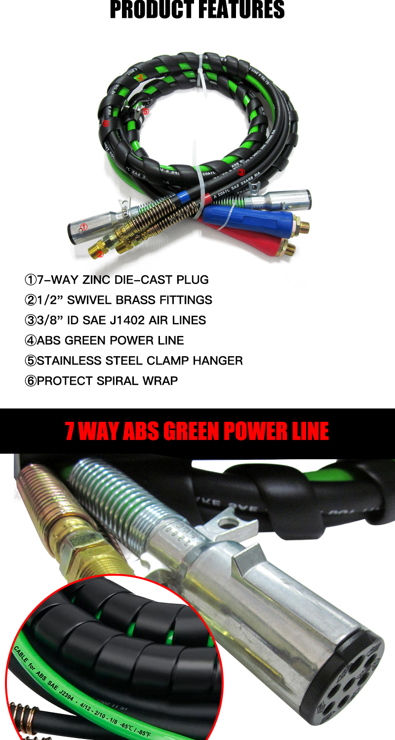 3 in 1 Air Brake Power Lines Hose Wrap 7 Way Electrical Cable Assembly with Handle Grip for Semi Truck Trailer Tractor