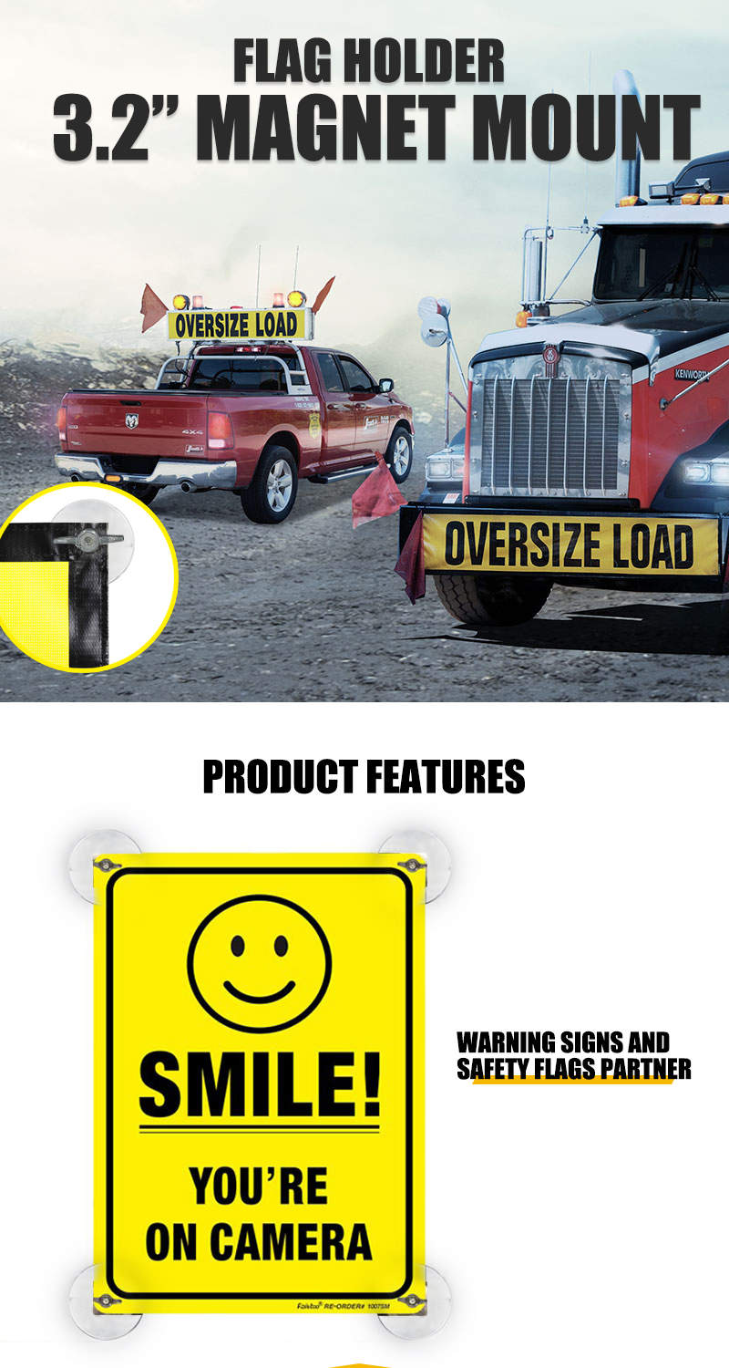 3.2" Safety flag Magnet mount Magnet Holder Chromed
