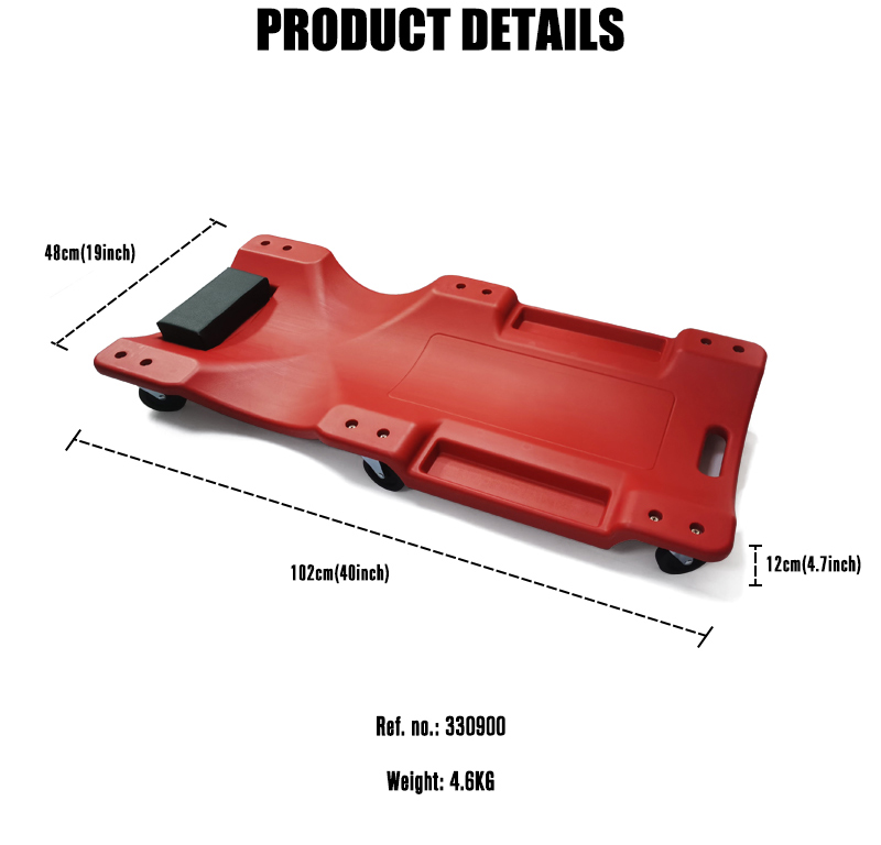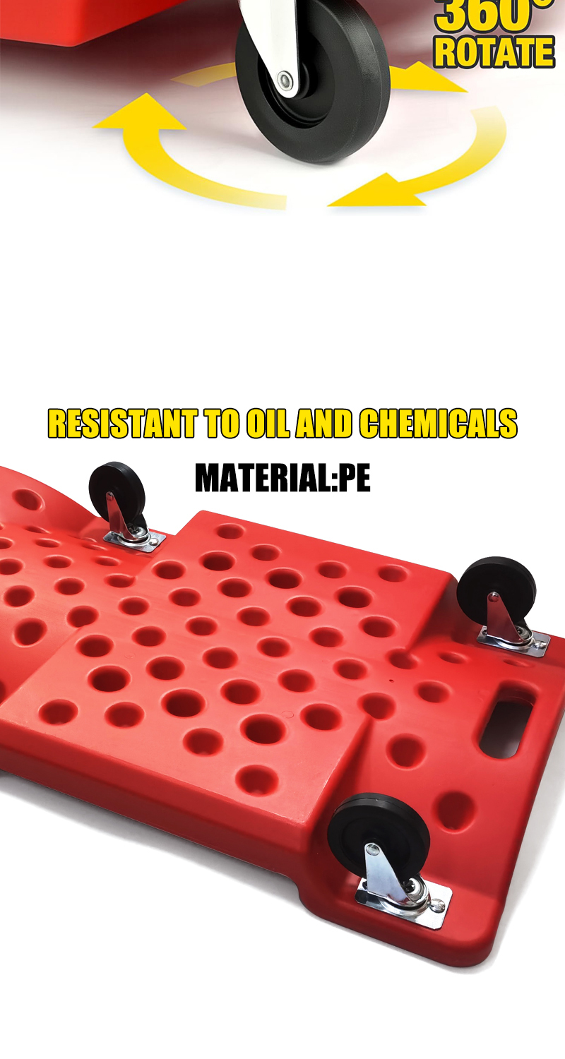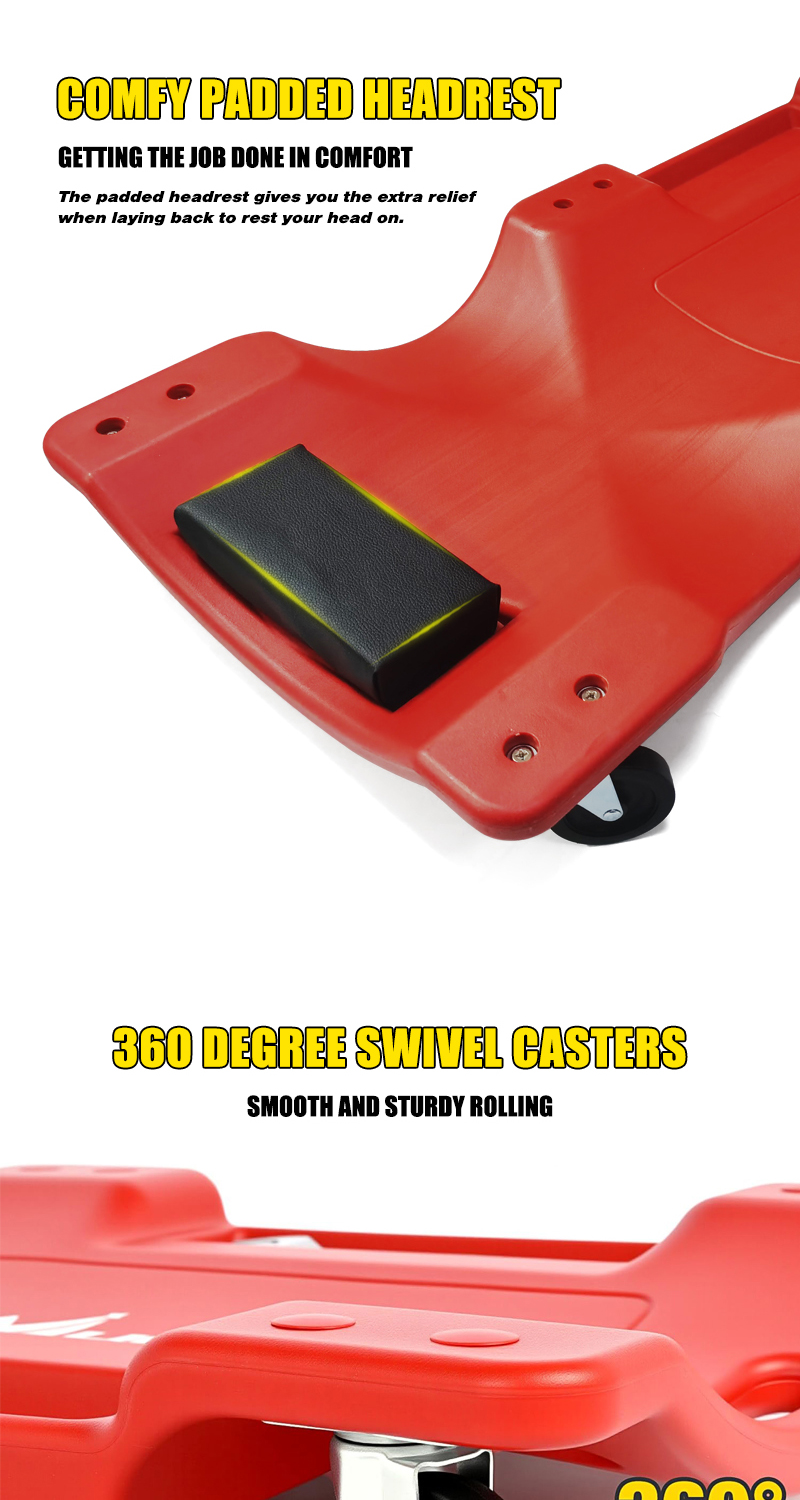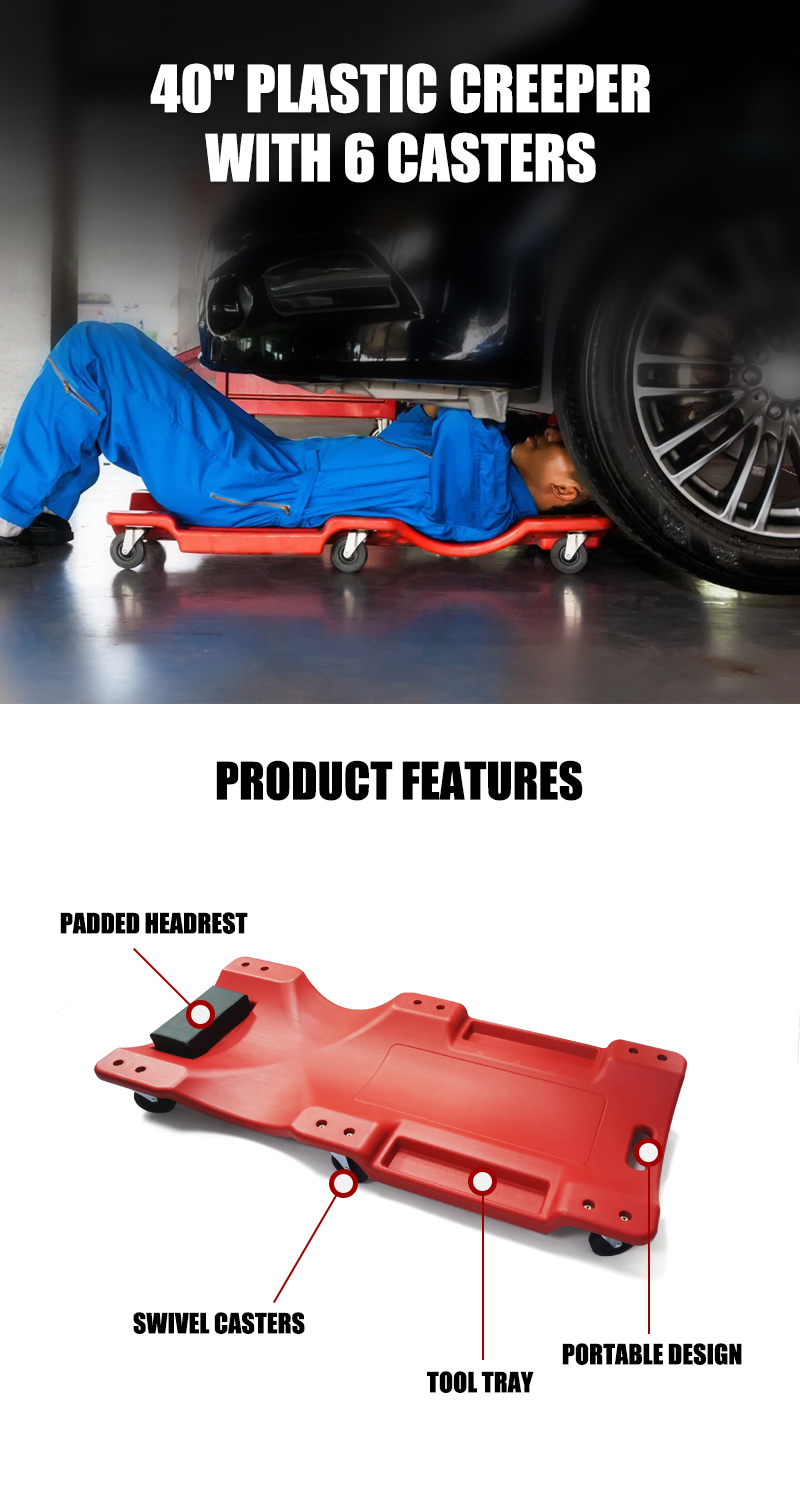 40" Heavy Duty Plastic Creeper with Padded Headrest and 6 Casters
