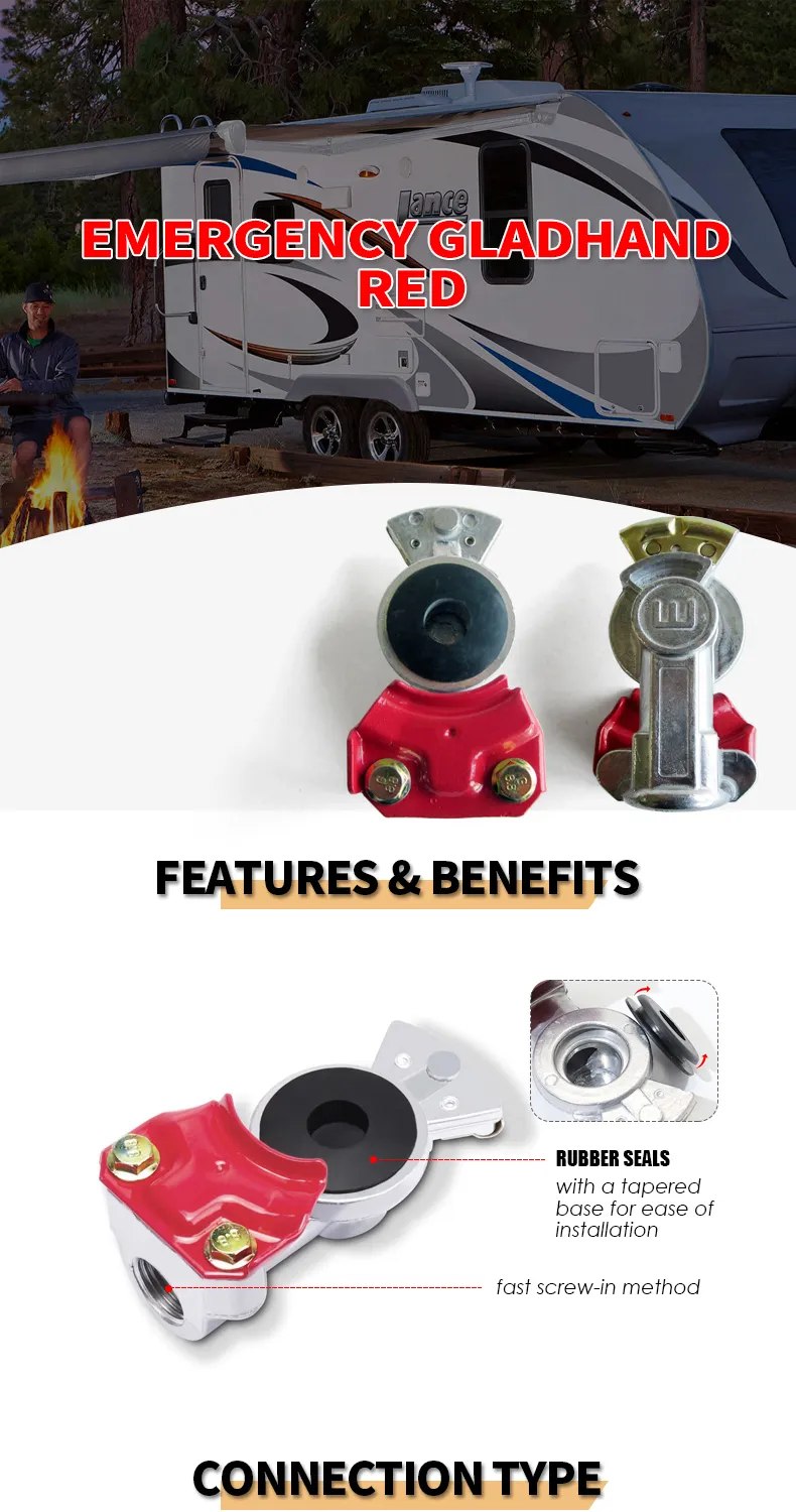 Aluminum Emergency Gladhand Red Air Hose Brake Coupling Service Handshake Set for Truck Semi Trailer RVs