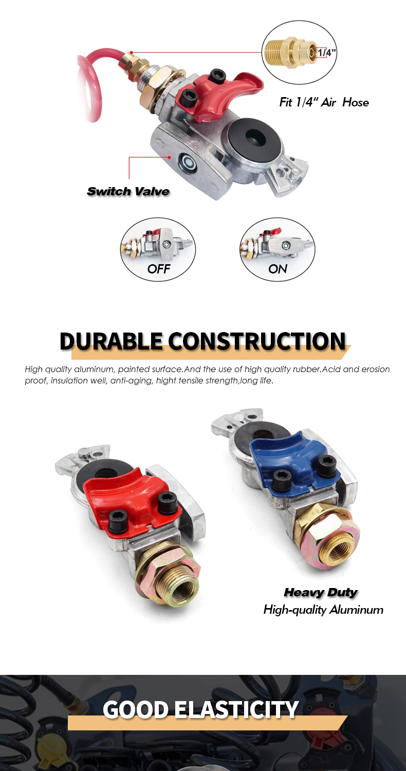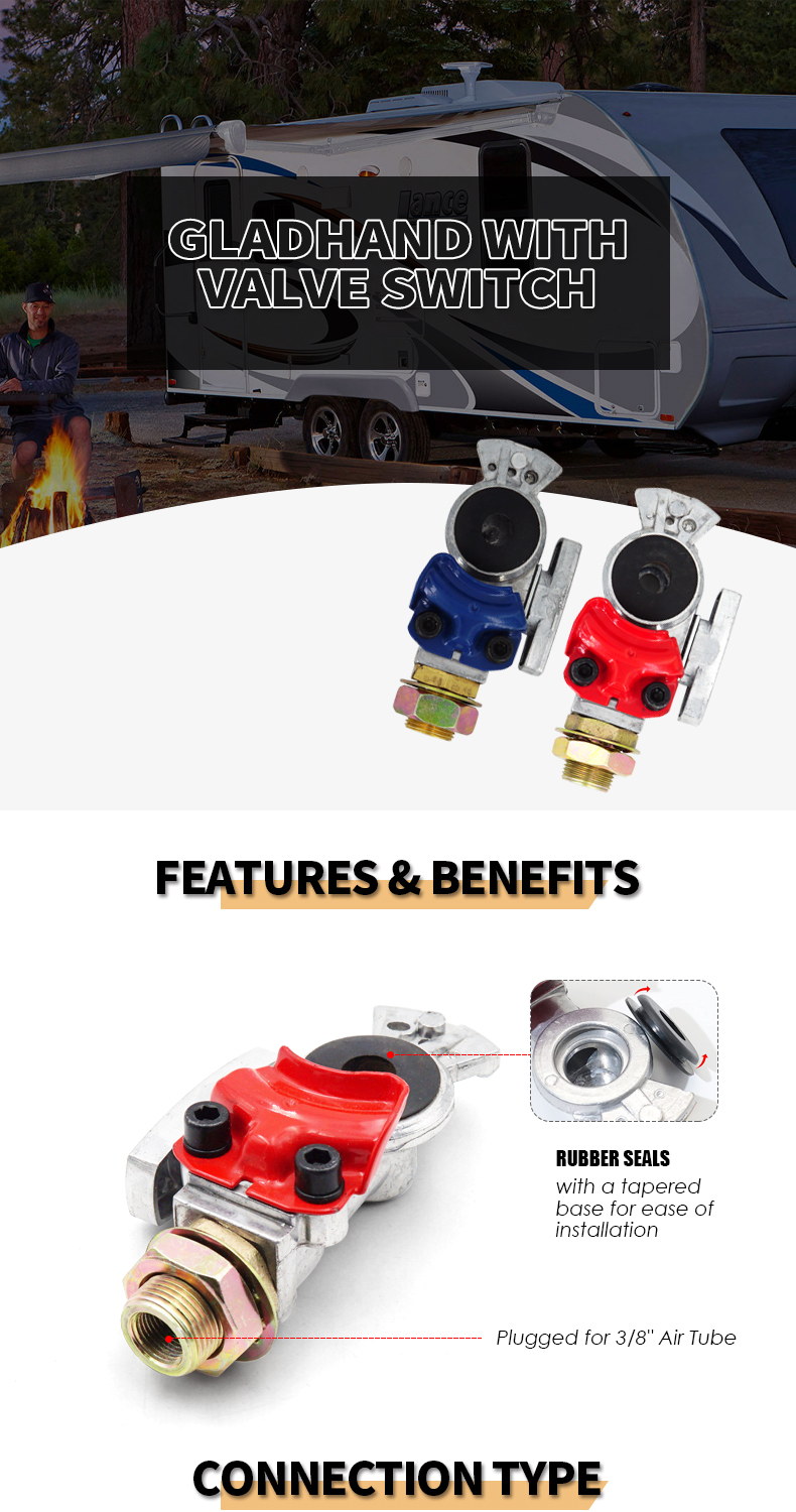 Aluminum Gladhand Glad Hand With Valve Switch Air Hose Brake Coupling Service Handshake for Truck Trailer RVs