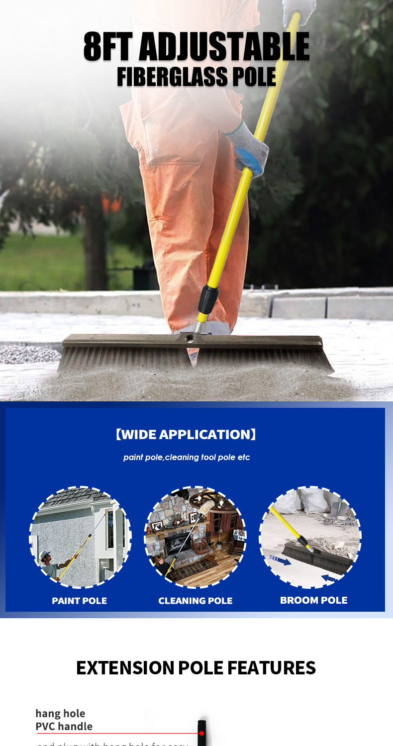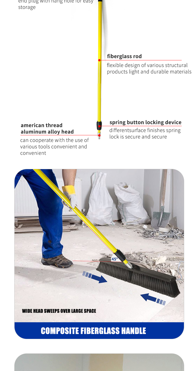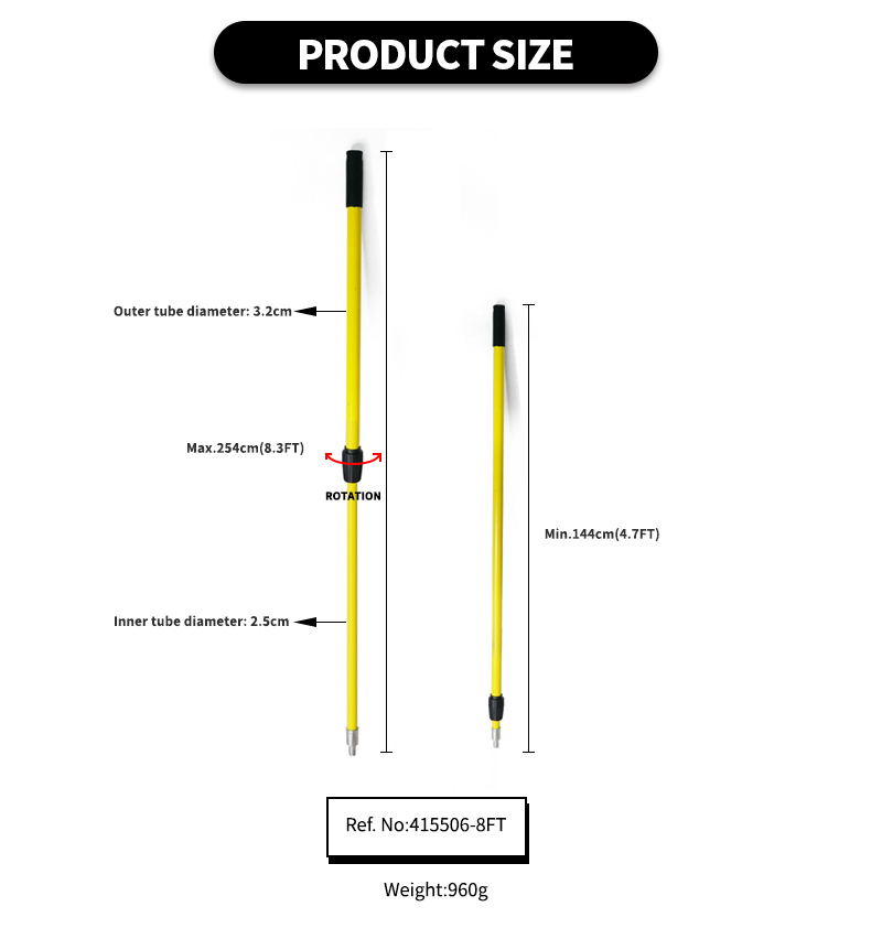 Cleaning Tools Accessory 8FT Adjustable Fiberglass Stick Plastic Floor Sweeping Broom Extension Pole