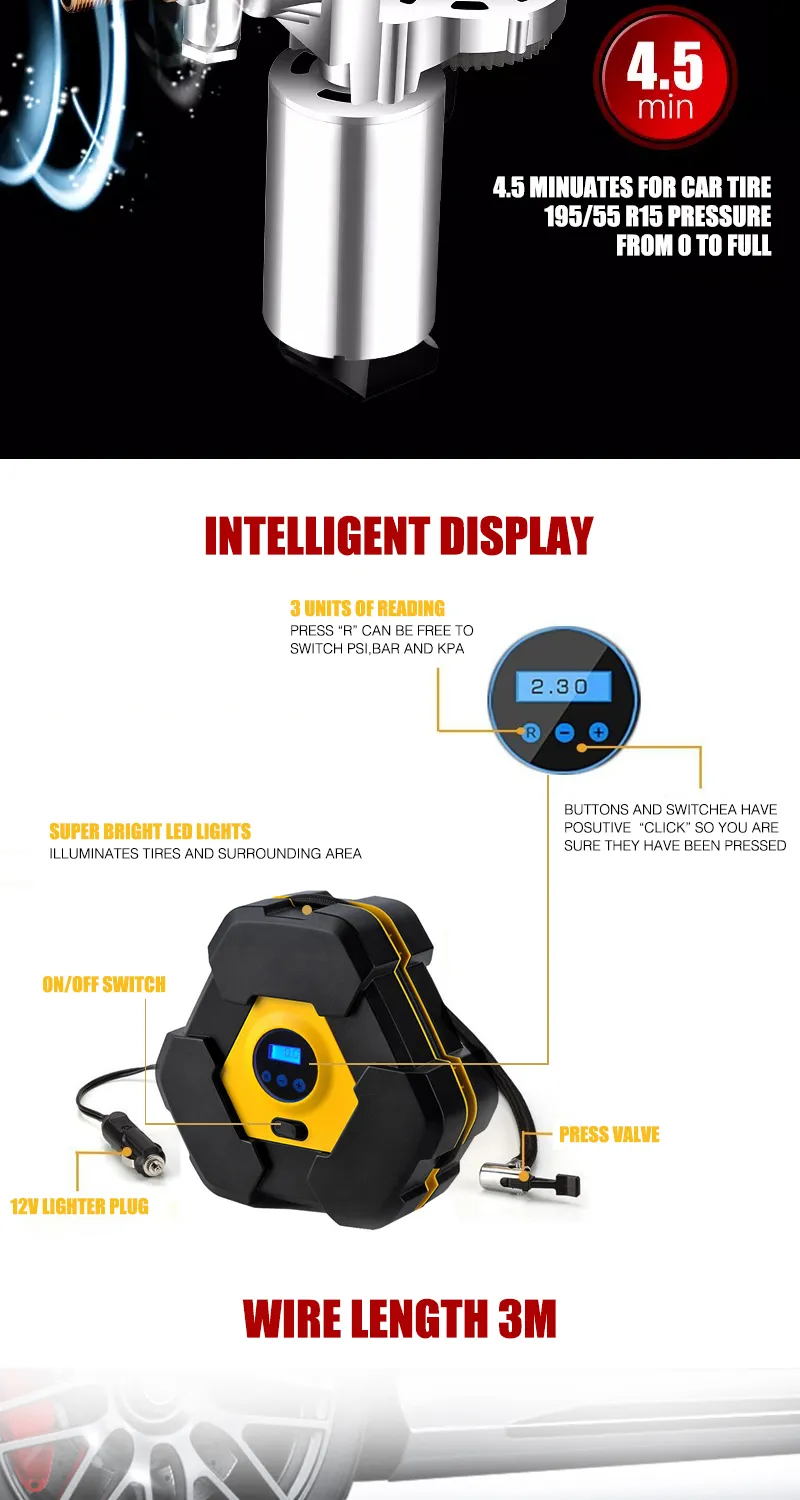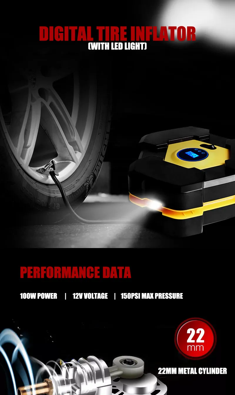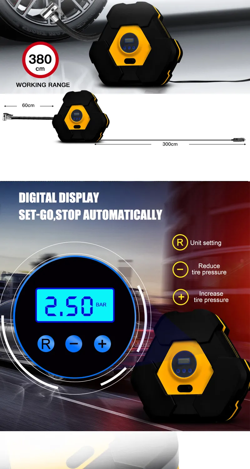 Digital Tire Inflator With LED light Wireless Car Tyre Compressor