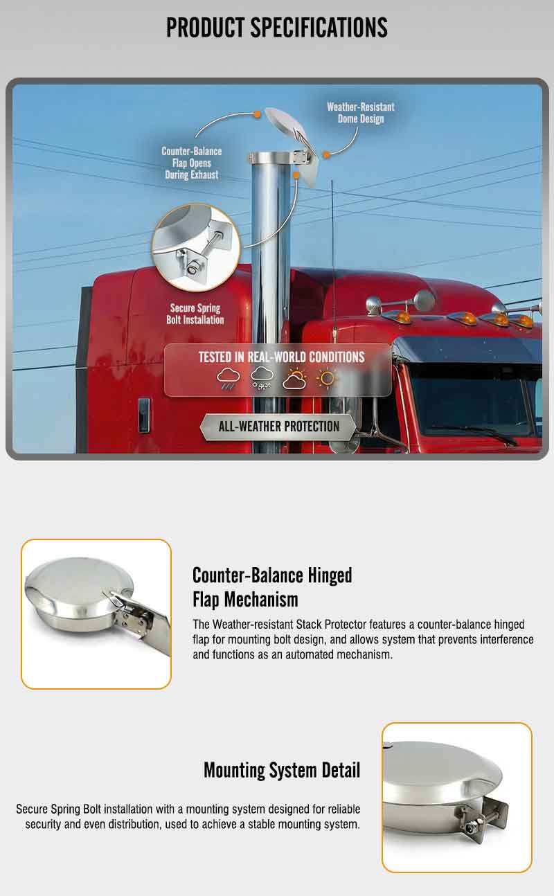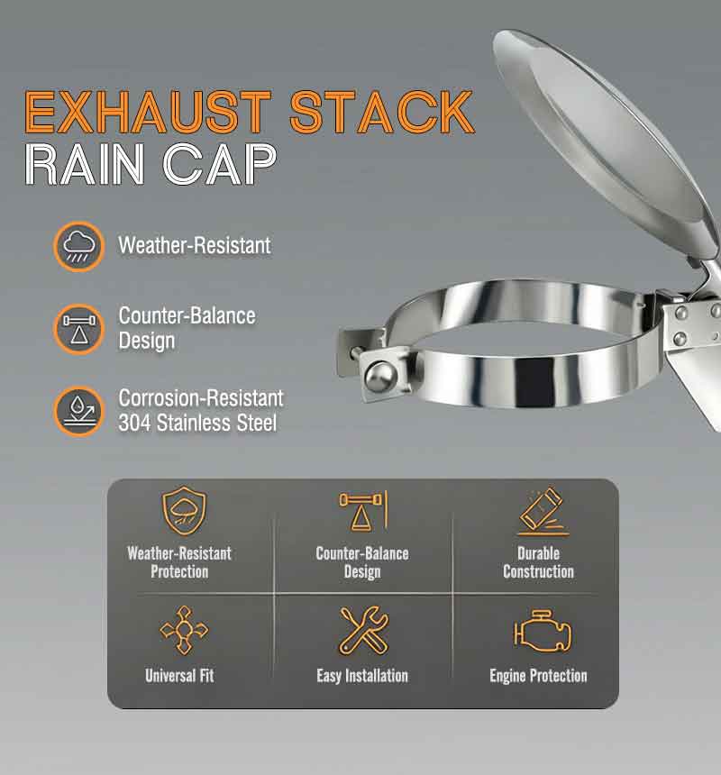 Exhaust Rain Cap Stack Protector for Straight Exhaust Piping on Trucks