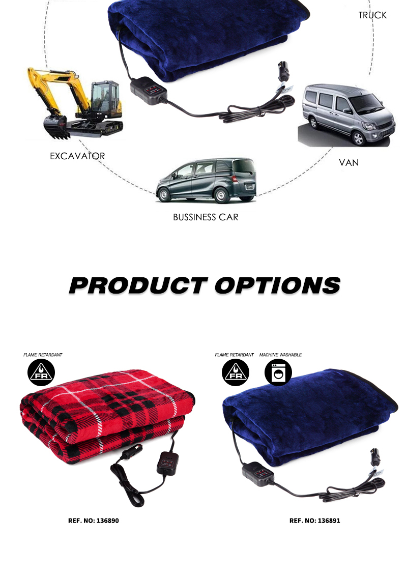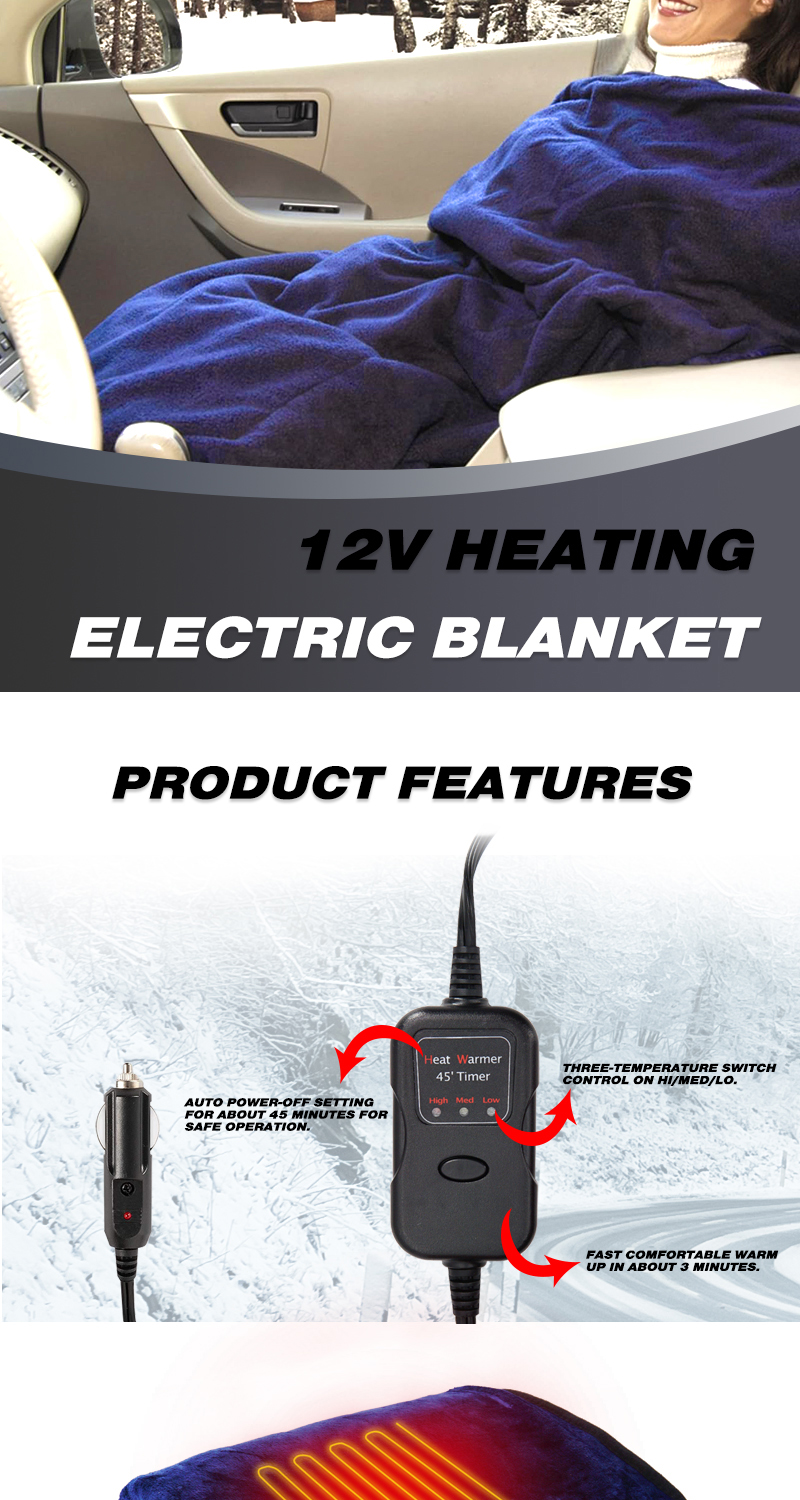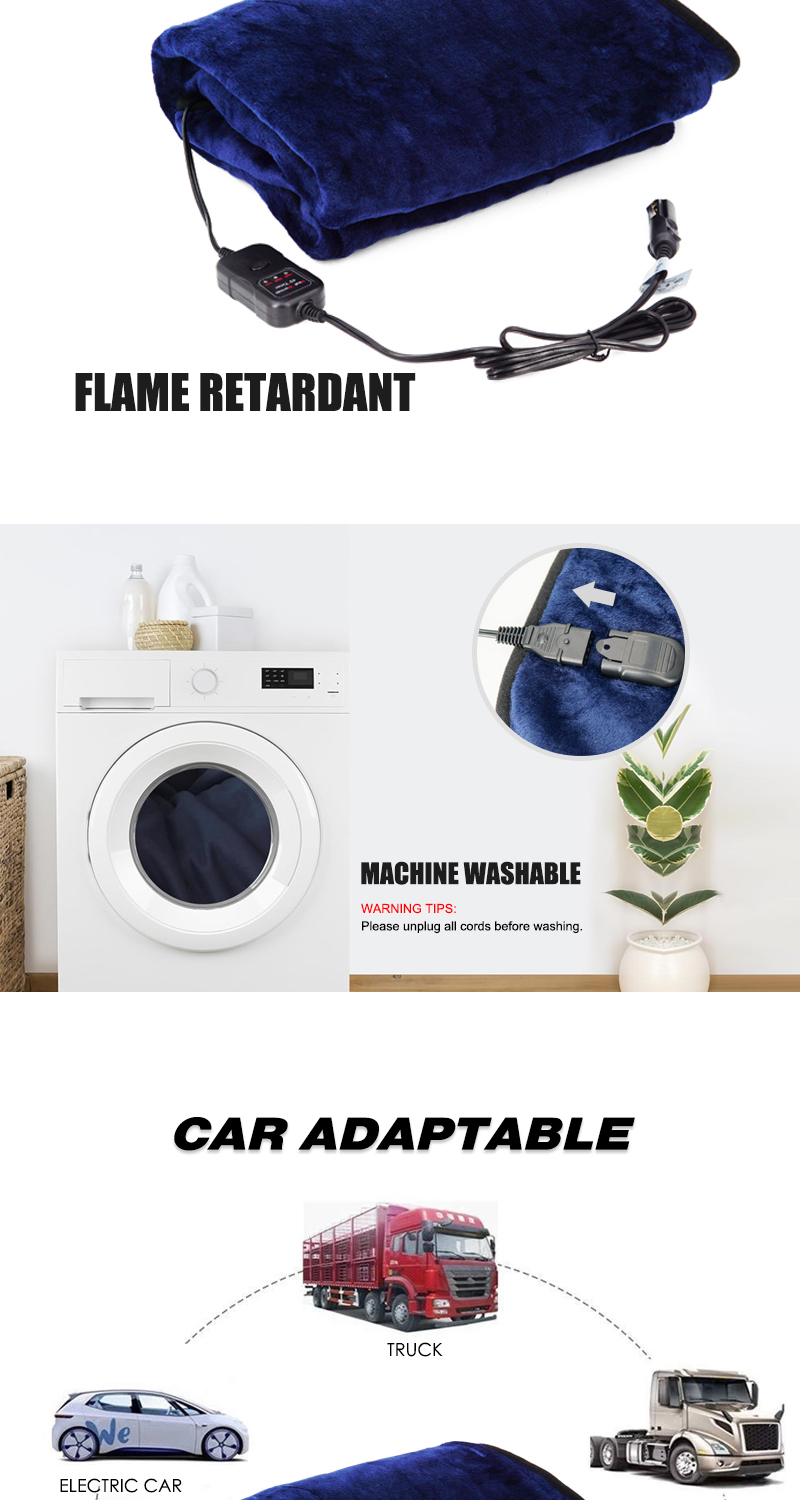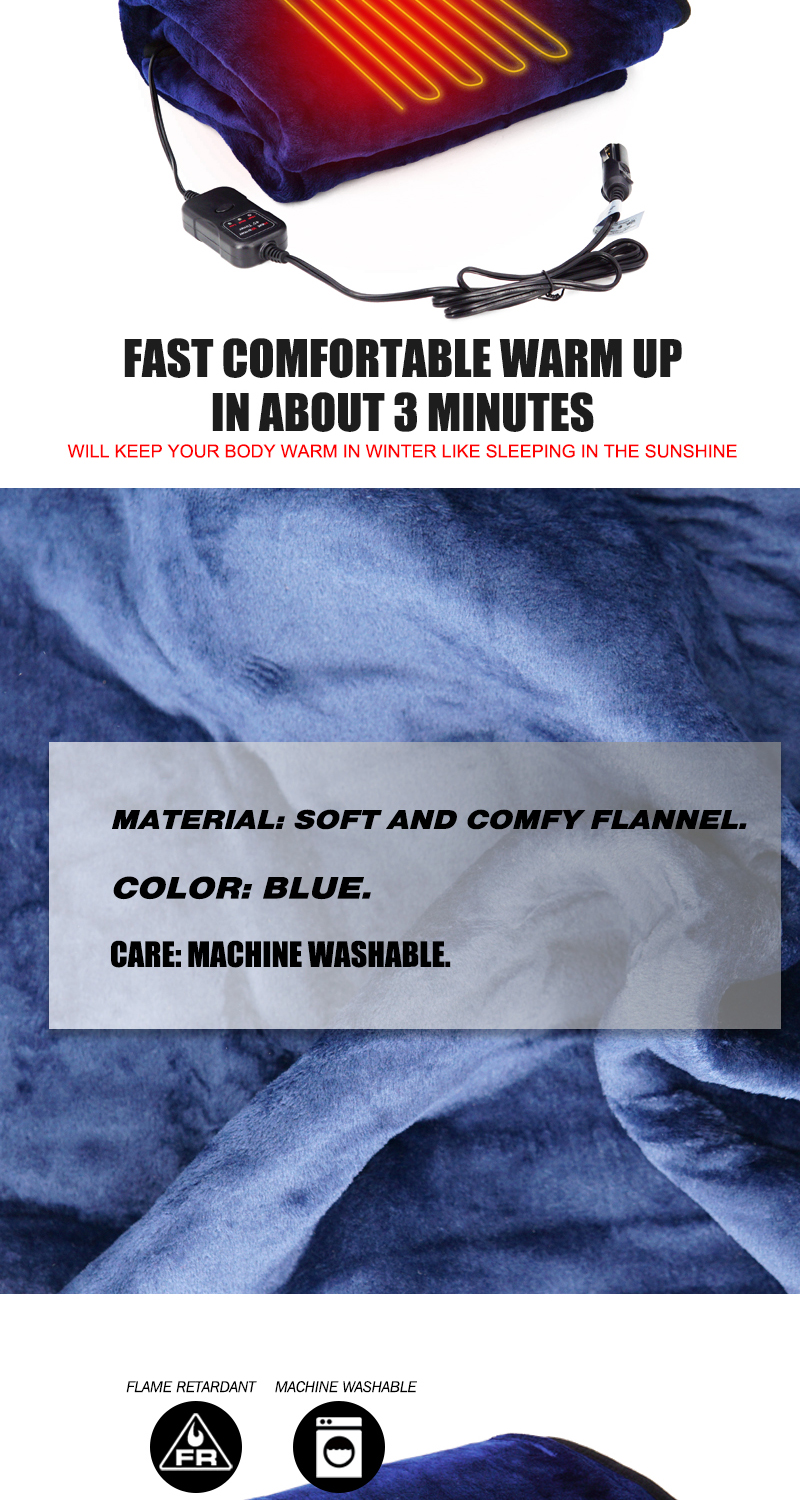 Flame Resistant Electric Car Blanket Heated 12 Volt Travel Throw For Car and RV For Cold Weather Machine Washable
