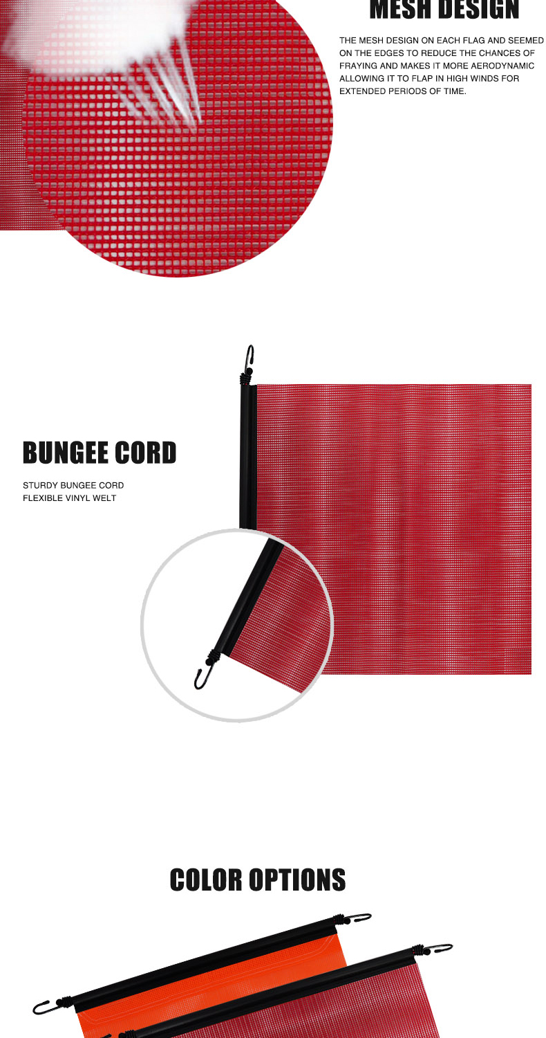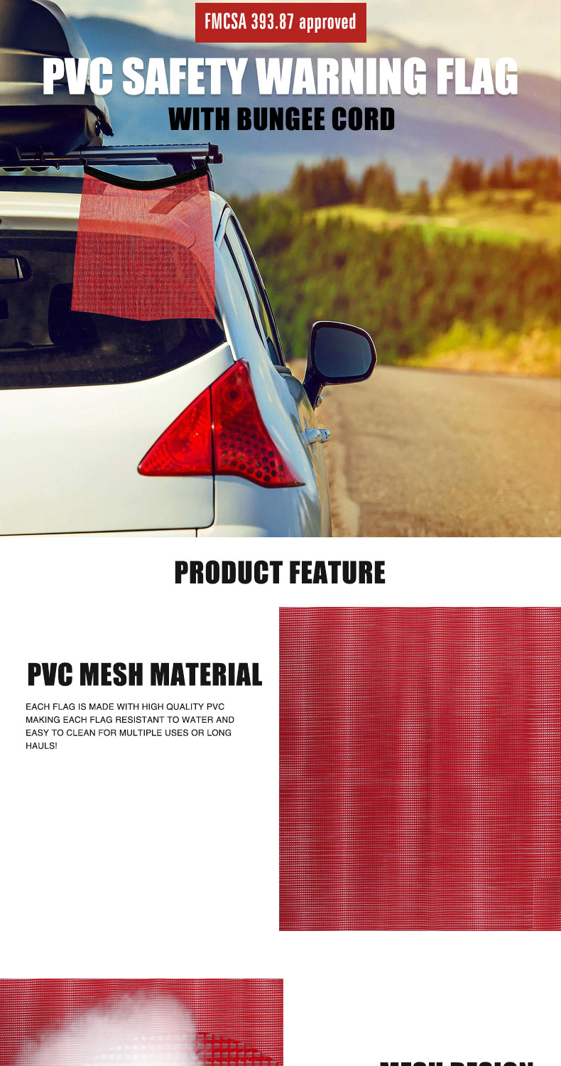 FMCSA 393.87 approved 18 x 18 Inches/24 x 24 Inches PVC Mesh Safety Flag With Bungee Cord