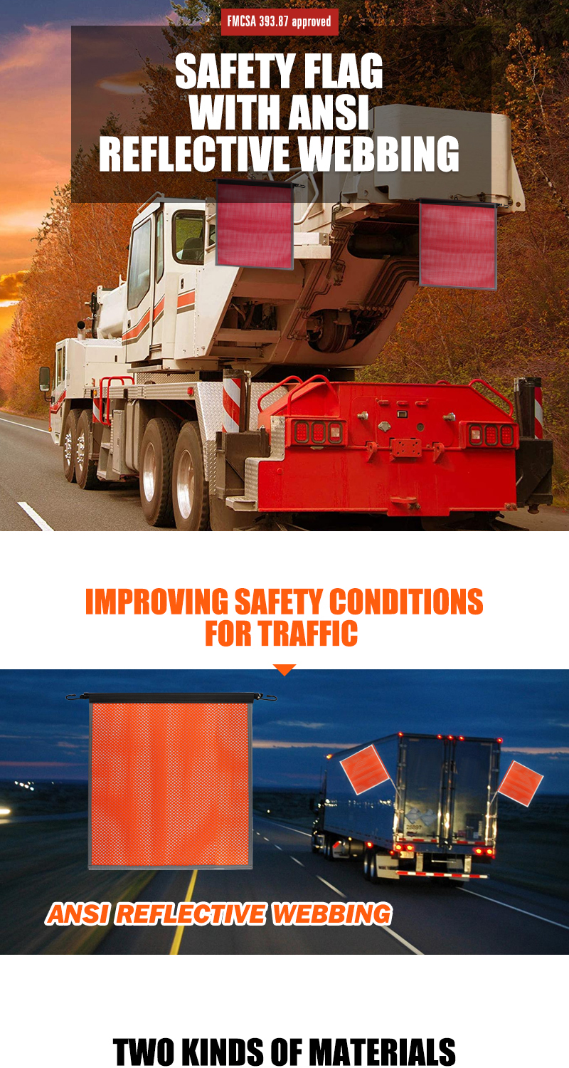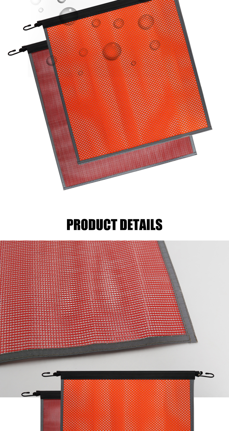 FMCSA 393.87 approved 18 x 18 Inches PVC Mesh Jersey Mesh Safety Flag With Bungee Cord ANSI Reflective Webbing