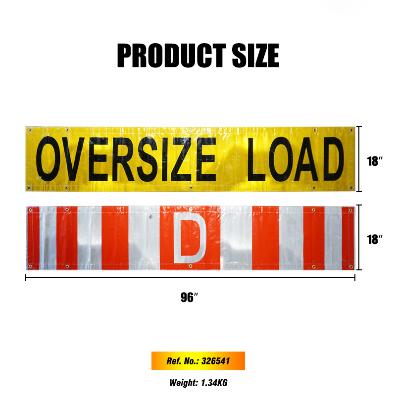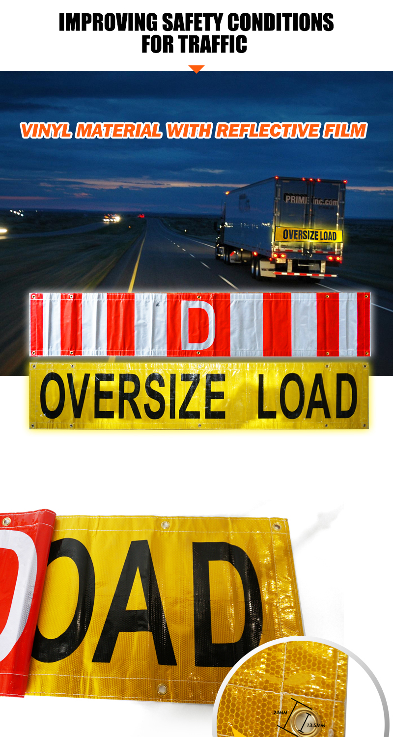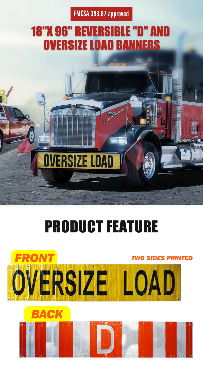FMCSA 393.87 Approved Silk Screen Print UV Resistant Grade 4 18"x 96" Reversible "D" and Oversize Load Banners