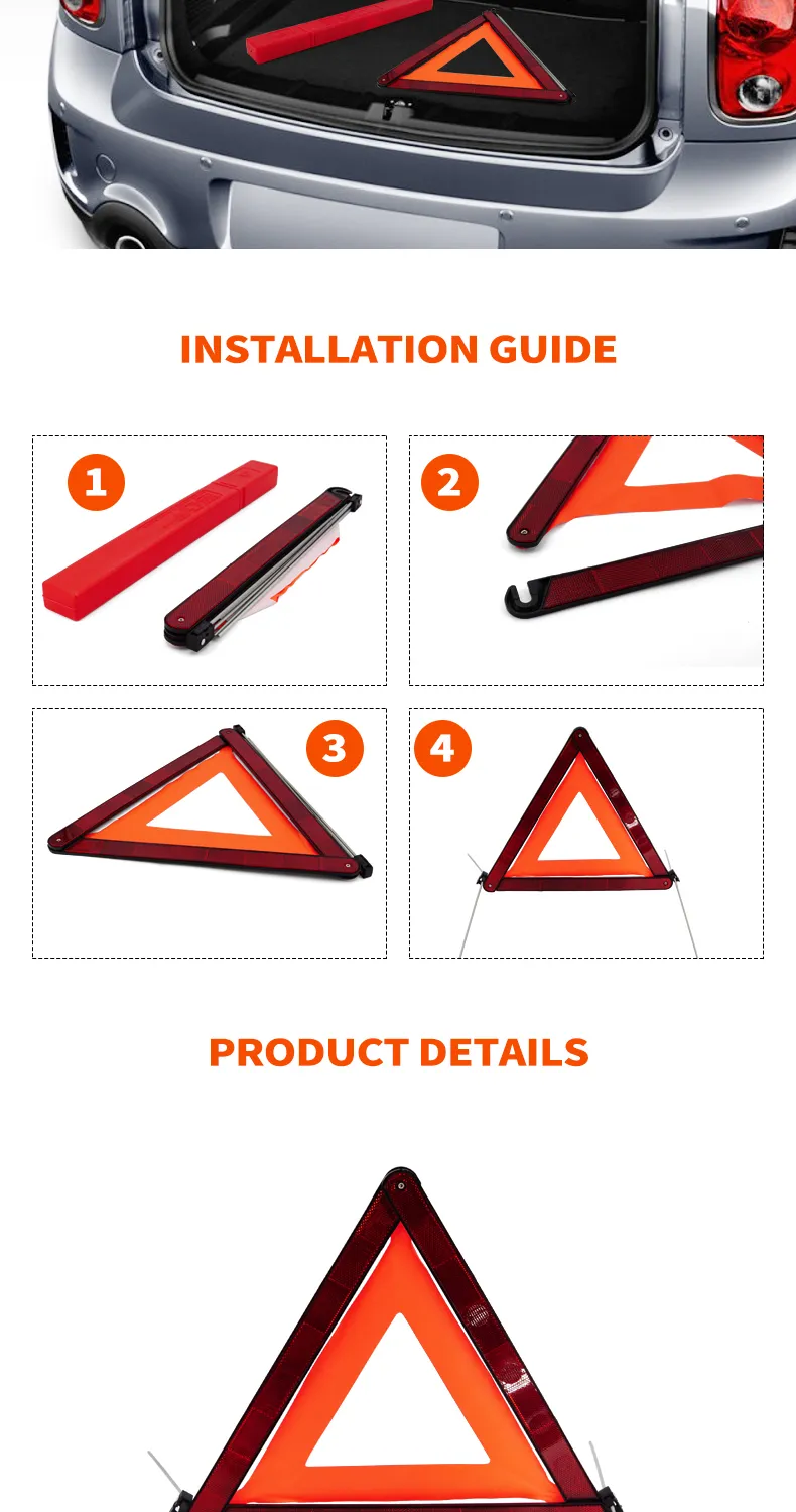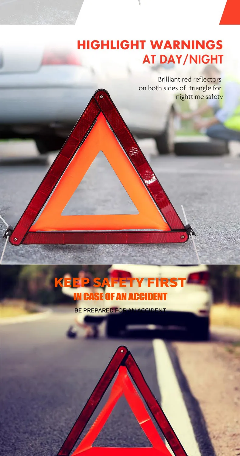 Foldable Red High Visibility Reflective Emergency Safety Warning Sign Triangle for Cars