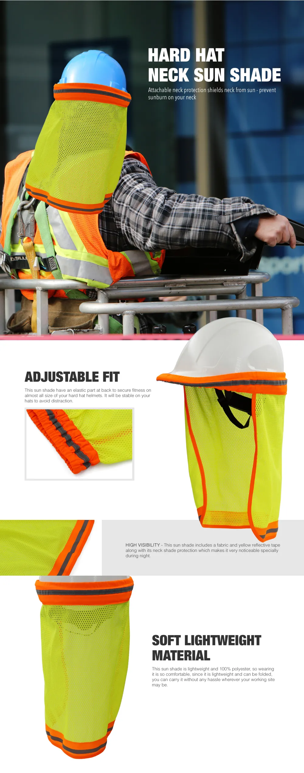 Hard Hat Neck Sun Shade Reflective Stripe High Visibility and Elastic for Safety Hard Hat Helmets One Size Fits All