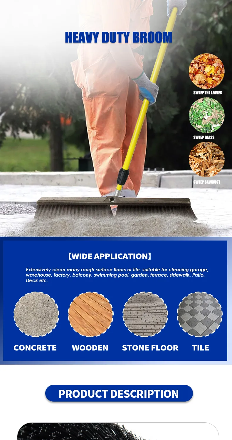 Heavy Duty Concrete Broom Heads Outdoor Push Hand Floor Road Scrub Brush