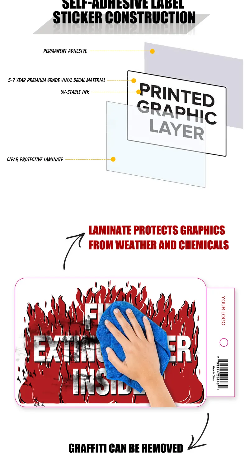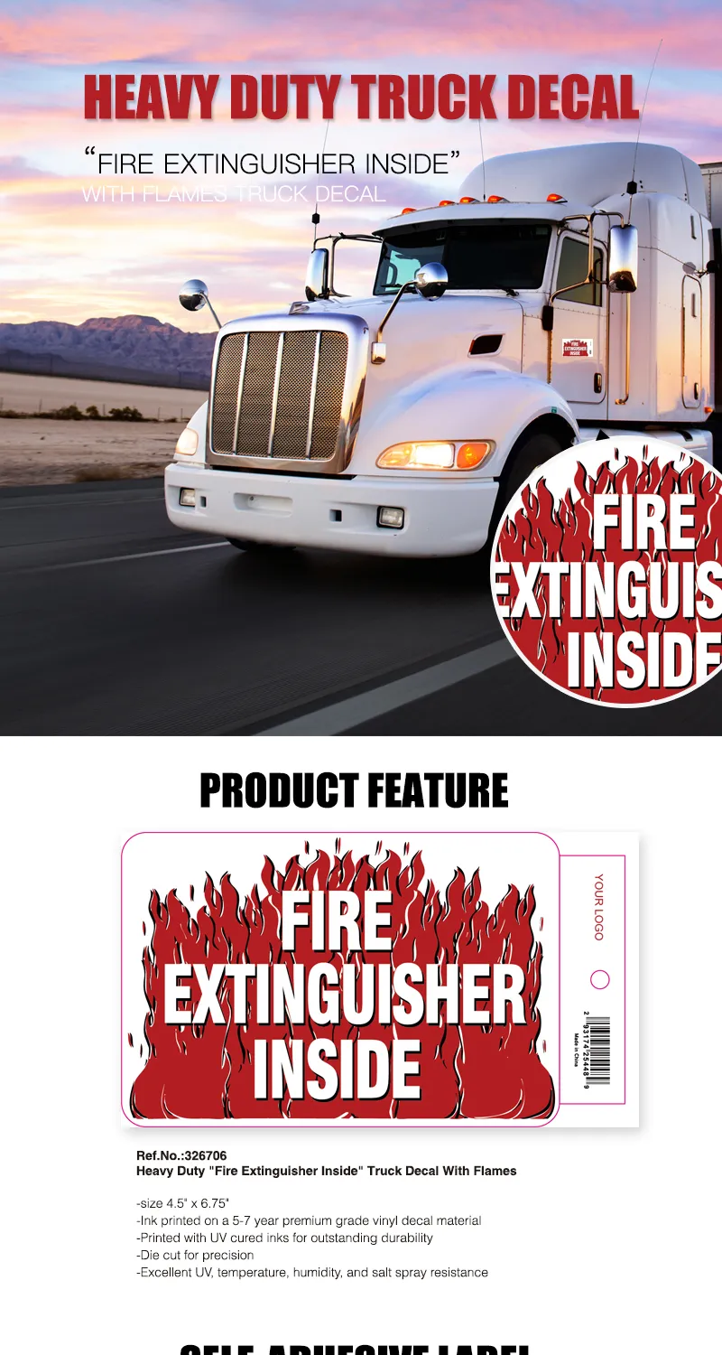 • Heavy Duty Fire Extinguisher Inside with Flames Truck Decal Sign Self Adhesive