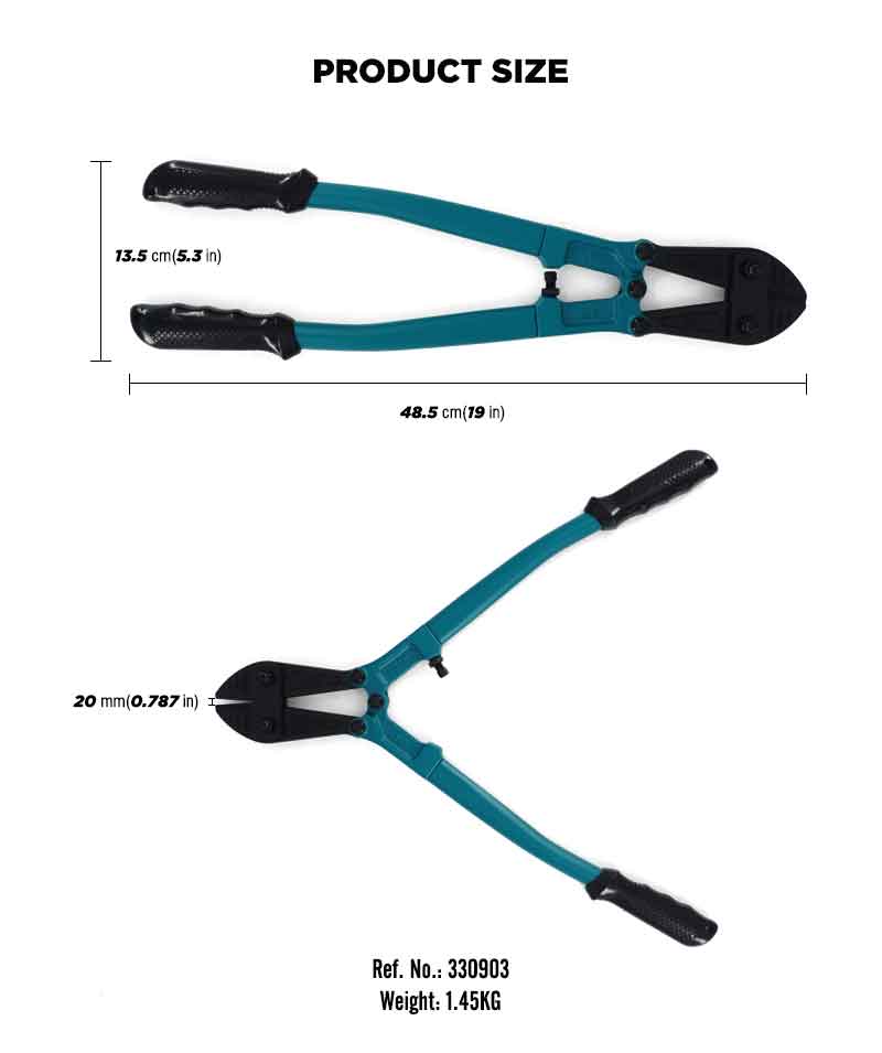 SIZE AND CUT RANGE: With a size of 18 Inch (450mm), these bolt cutters offer an optimal balance between maneuverability and cutting capacity.