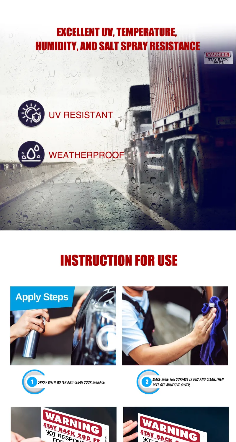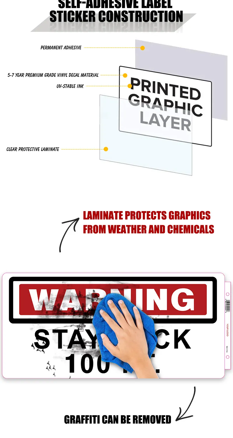 Heavy Duty Stay Back 100 Feet Decal Truck Decal Sign Self Adhesive