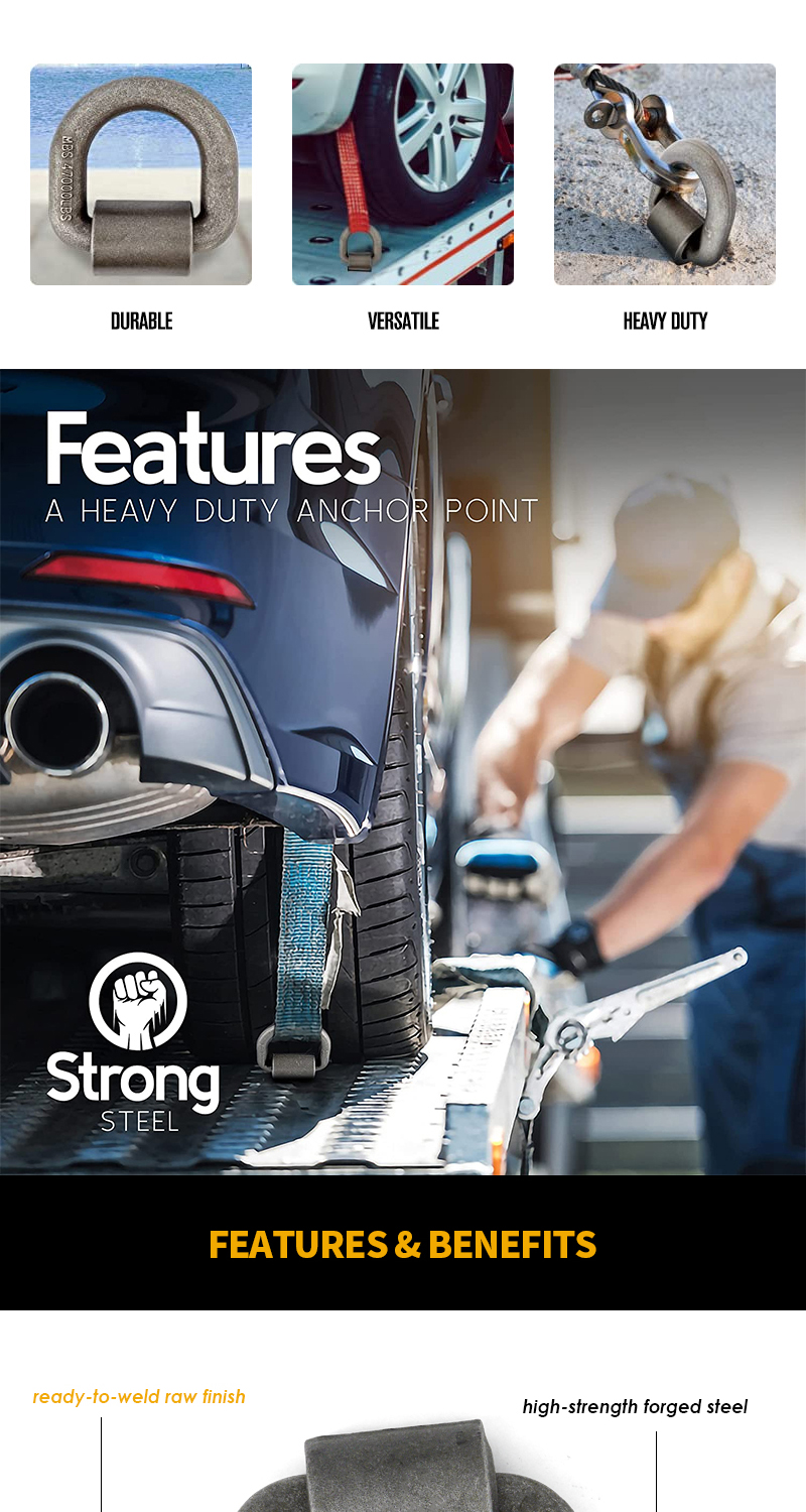 Heavy Duty Weld-On Forged D Ring 47600 Pounds Break Strength for Trailers Trucks and Cargo Tie Downs