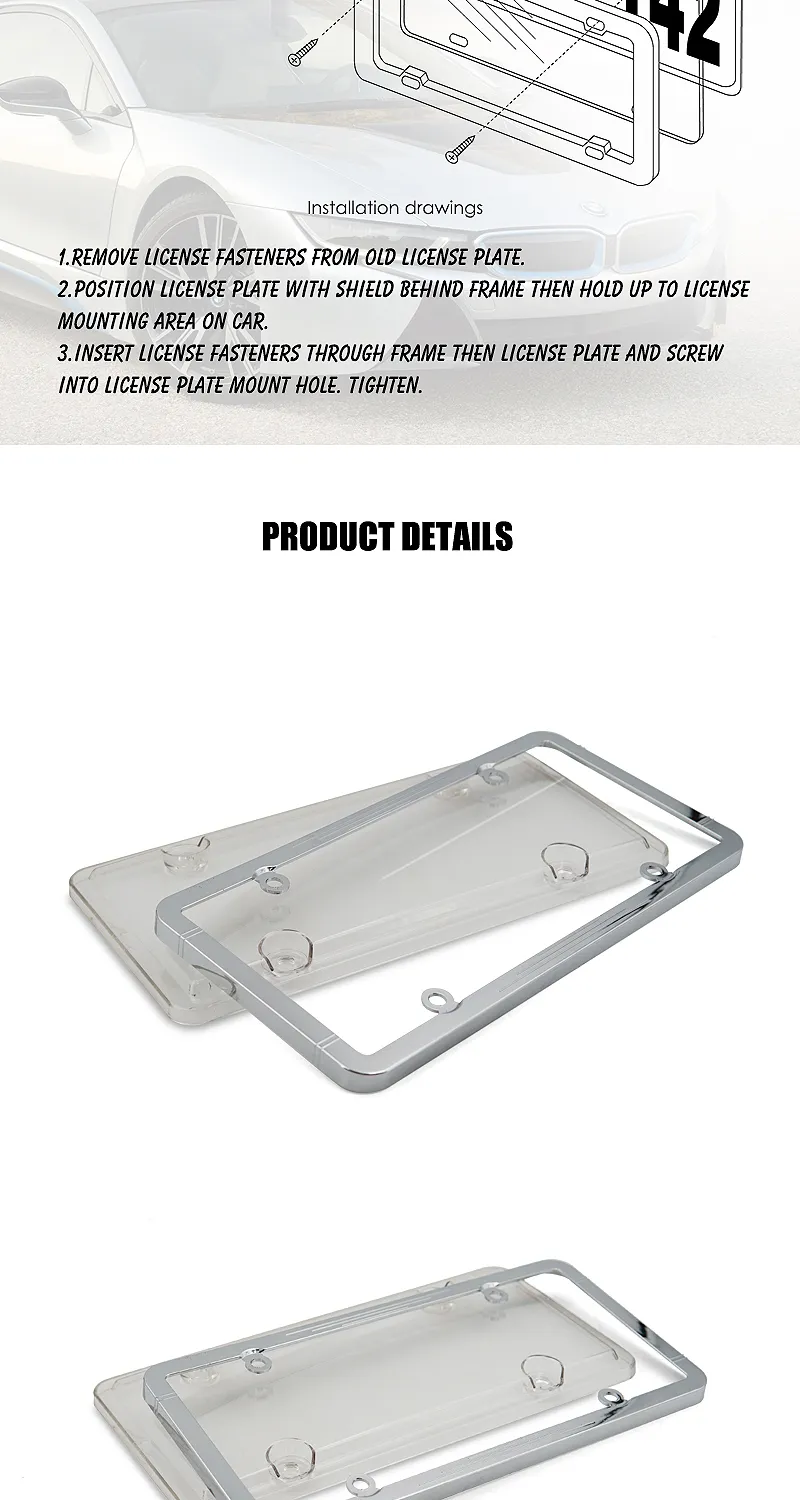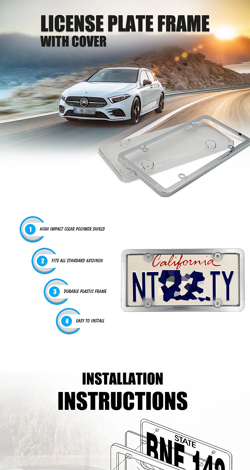 High Quality Car Chrome ABS License Plate Frame with PC License Plate Cover