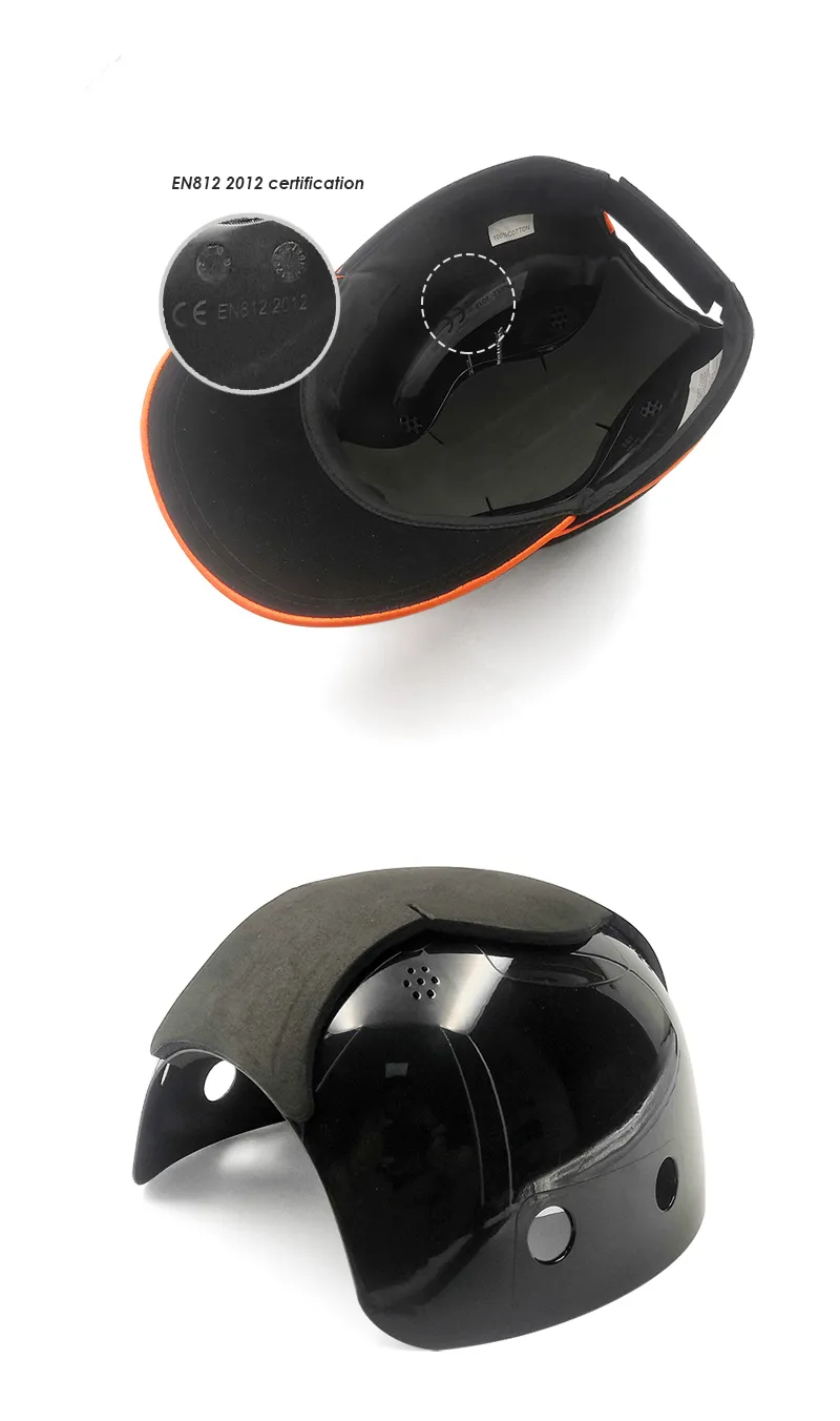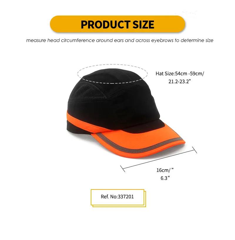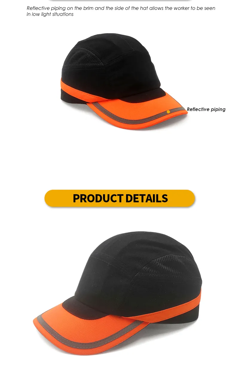 Lightweight Bump Cap orange red Baseball Hat Style Breathable Head Protection