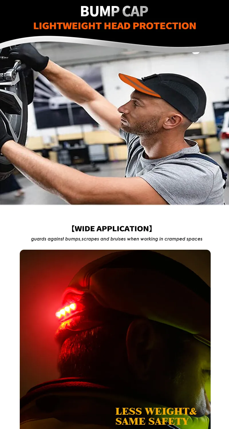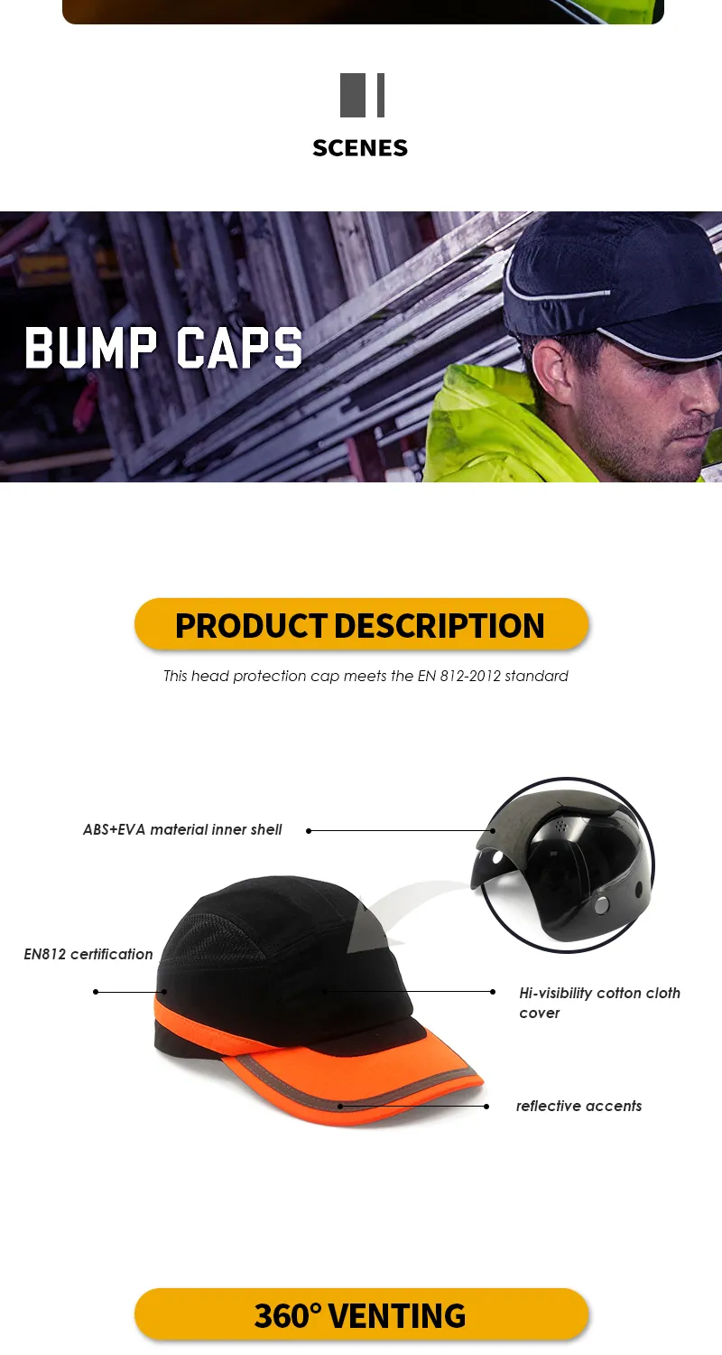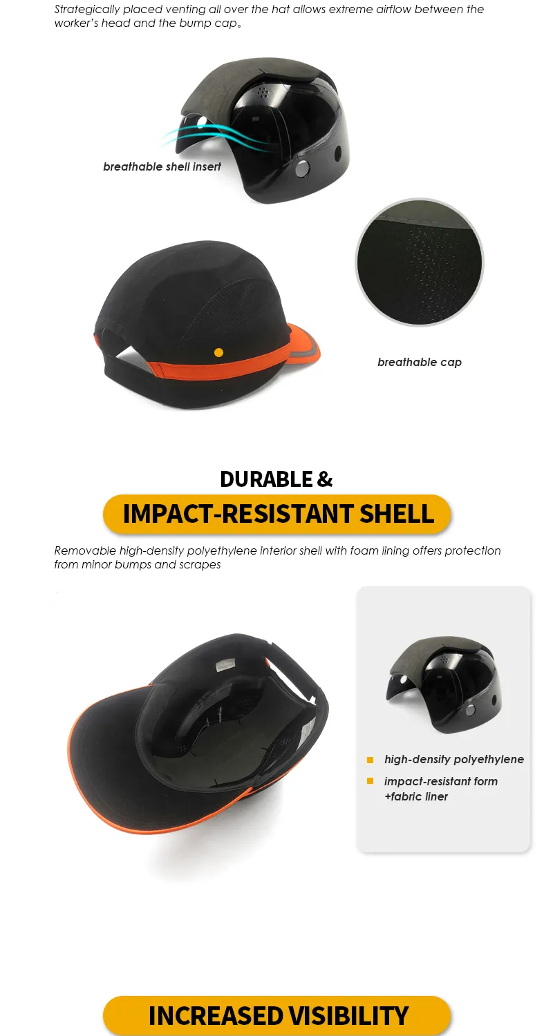 Lightweight Bump Cap orange red Baseball Hat Style Breathable Head Protection