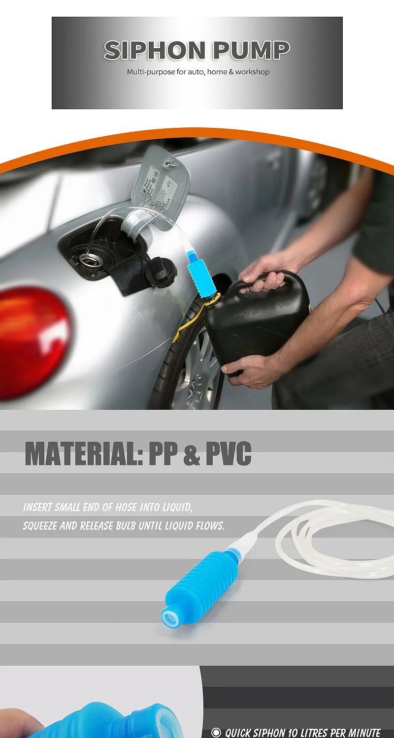 Liquid Fuel Transfer Siphon Pump Suction Manual Pumping Petrol Water Siphon Hose