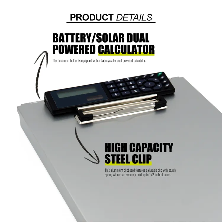 Metal Aluminum Dual Storage Foldable Folding Clipboard Box Nursing Metal with Calculator and Pen Holder Storage
