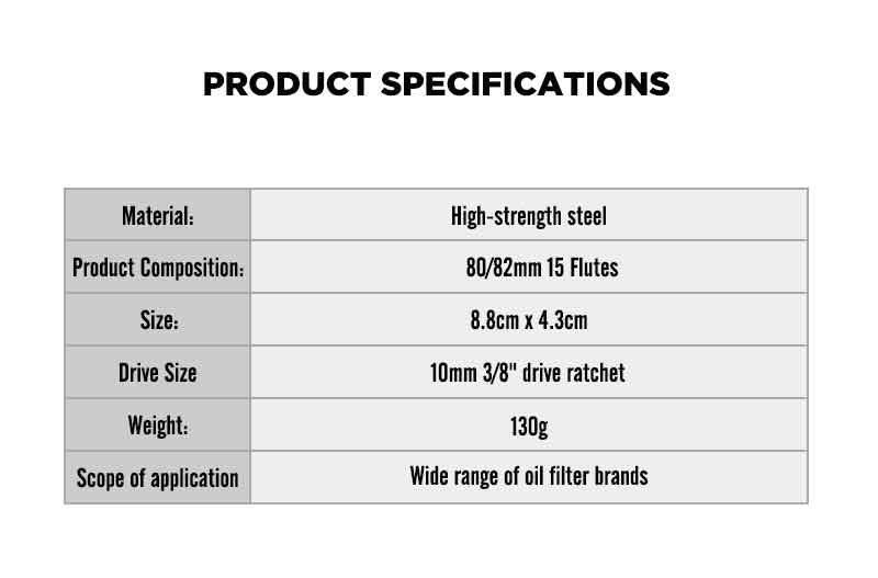 PRECISE FIT: Cap Filter Wrench is designed to fit oil filters with a diameter of 80mm and 15 flutes, providing a precise and secure grip.