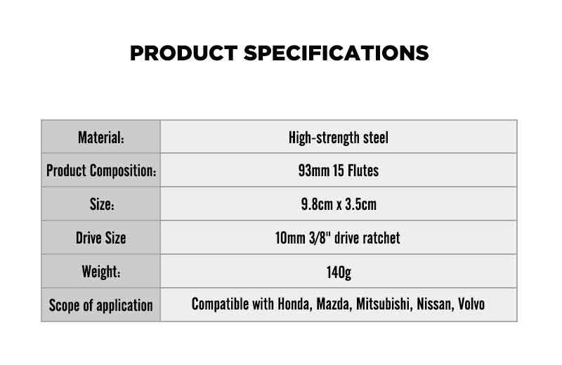 Oil Filter Cap Wrench 93mm 15 Flute Steel Oil Filter Cap Removal Tool