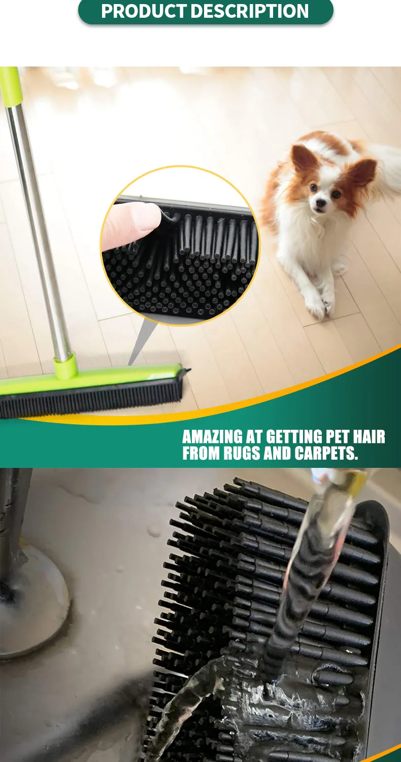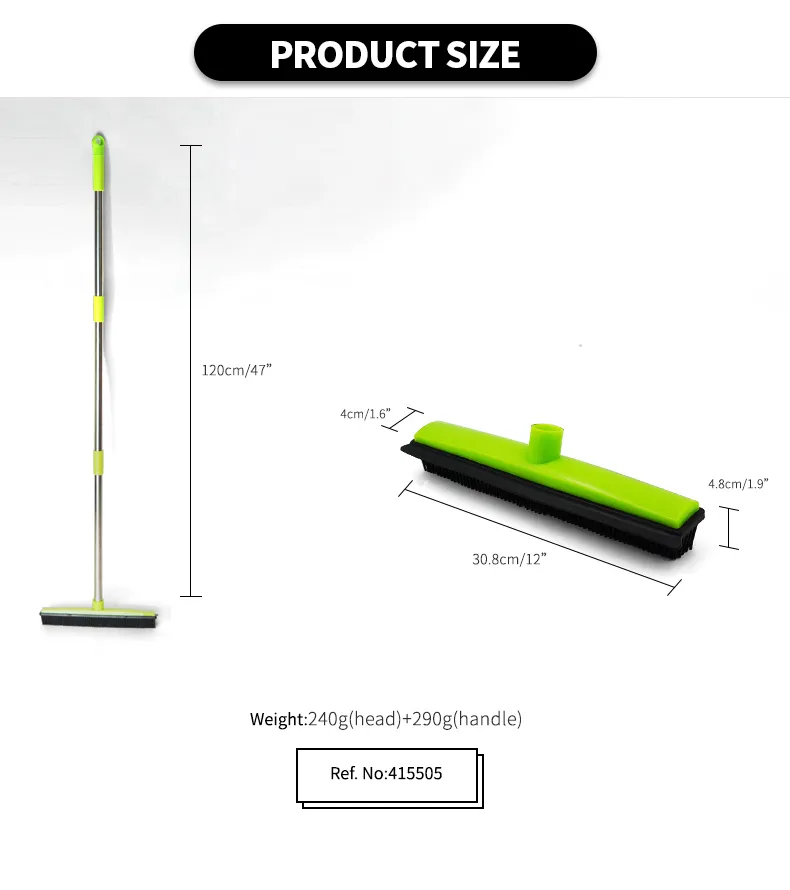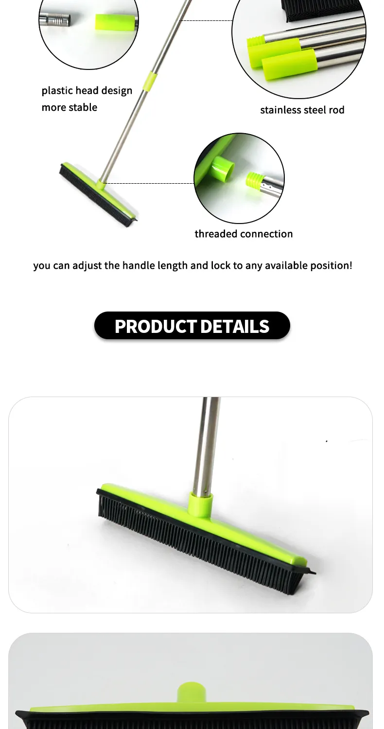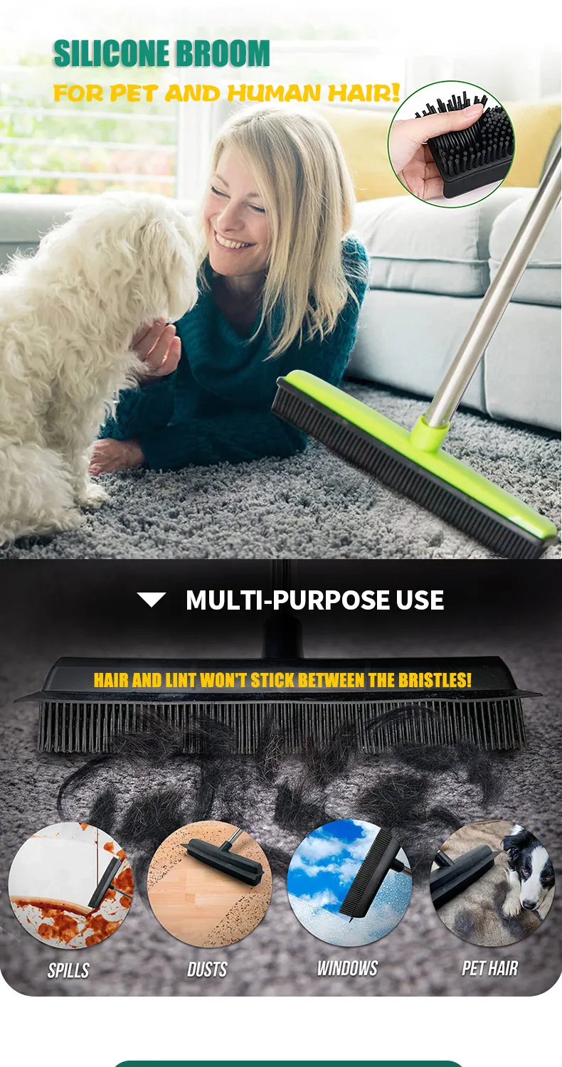Pet Hair Rubber Broom Floor Brush for Carpet Dog Hair Remover Silicone Broom Suitable for All Surface with Built in Squeegee
