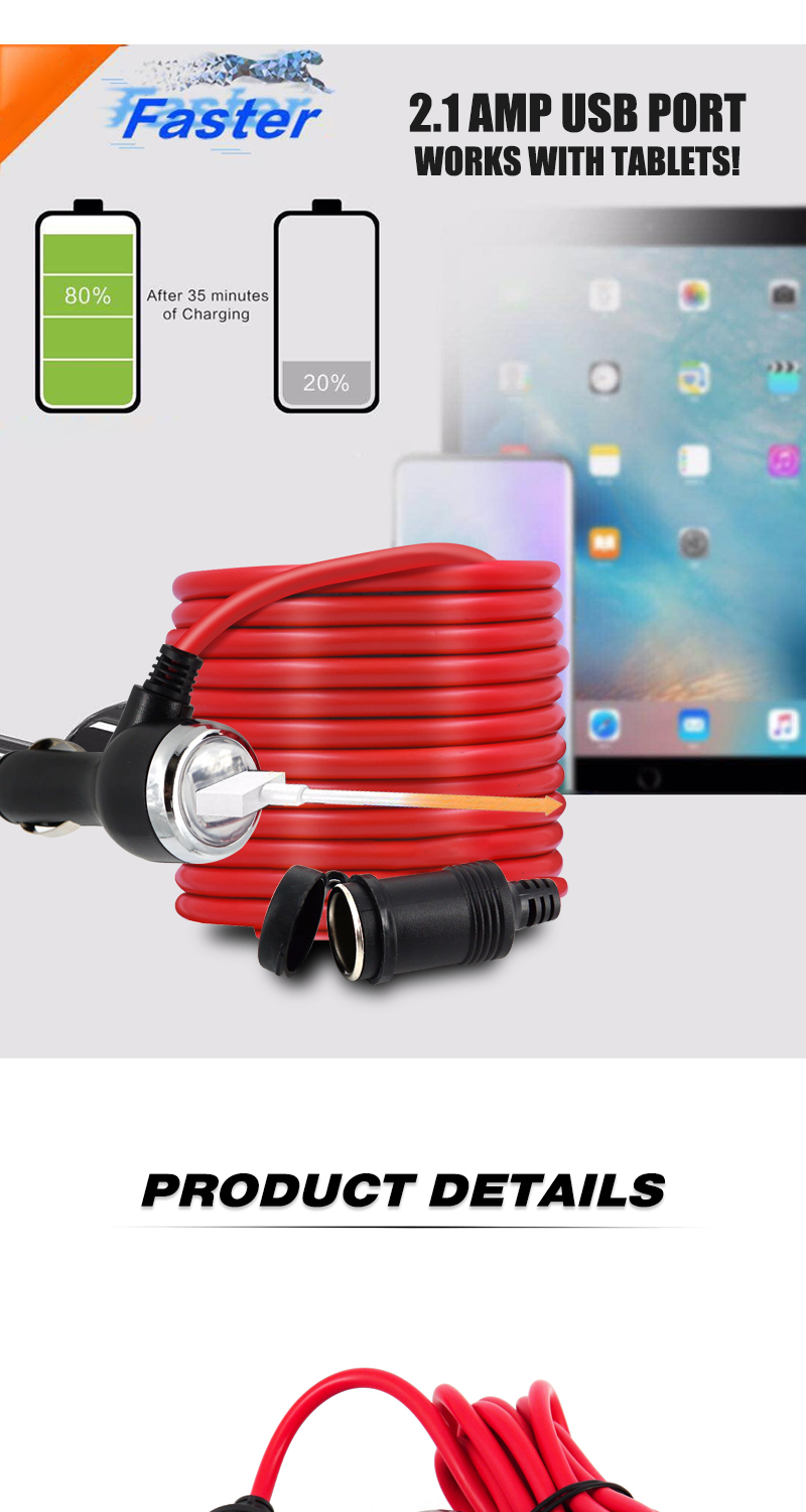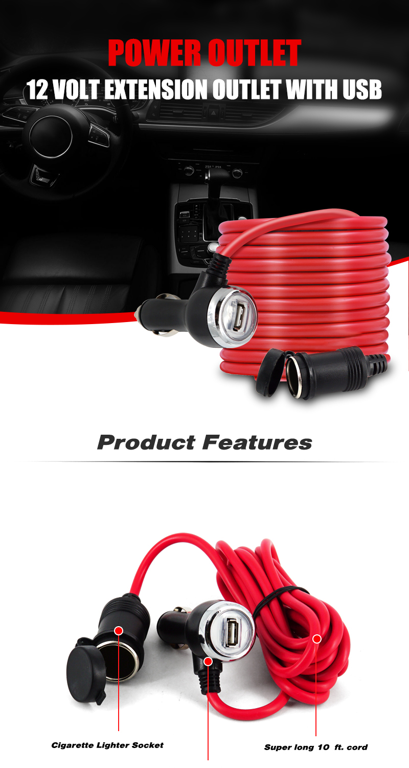 Power Outlet 12 Volt Extension Outlet with USB Port