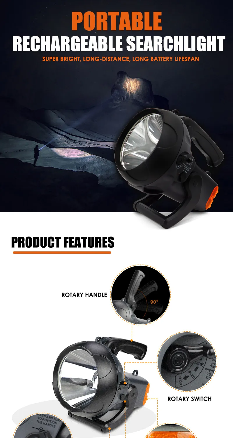 Rechargeable 10 Watt Handheld LED Spotlight Flashlight with Blinking Light 4000mAh Li-ion