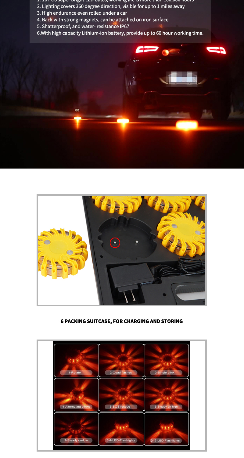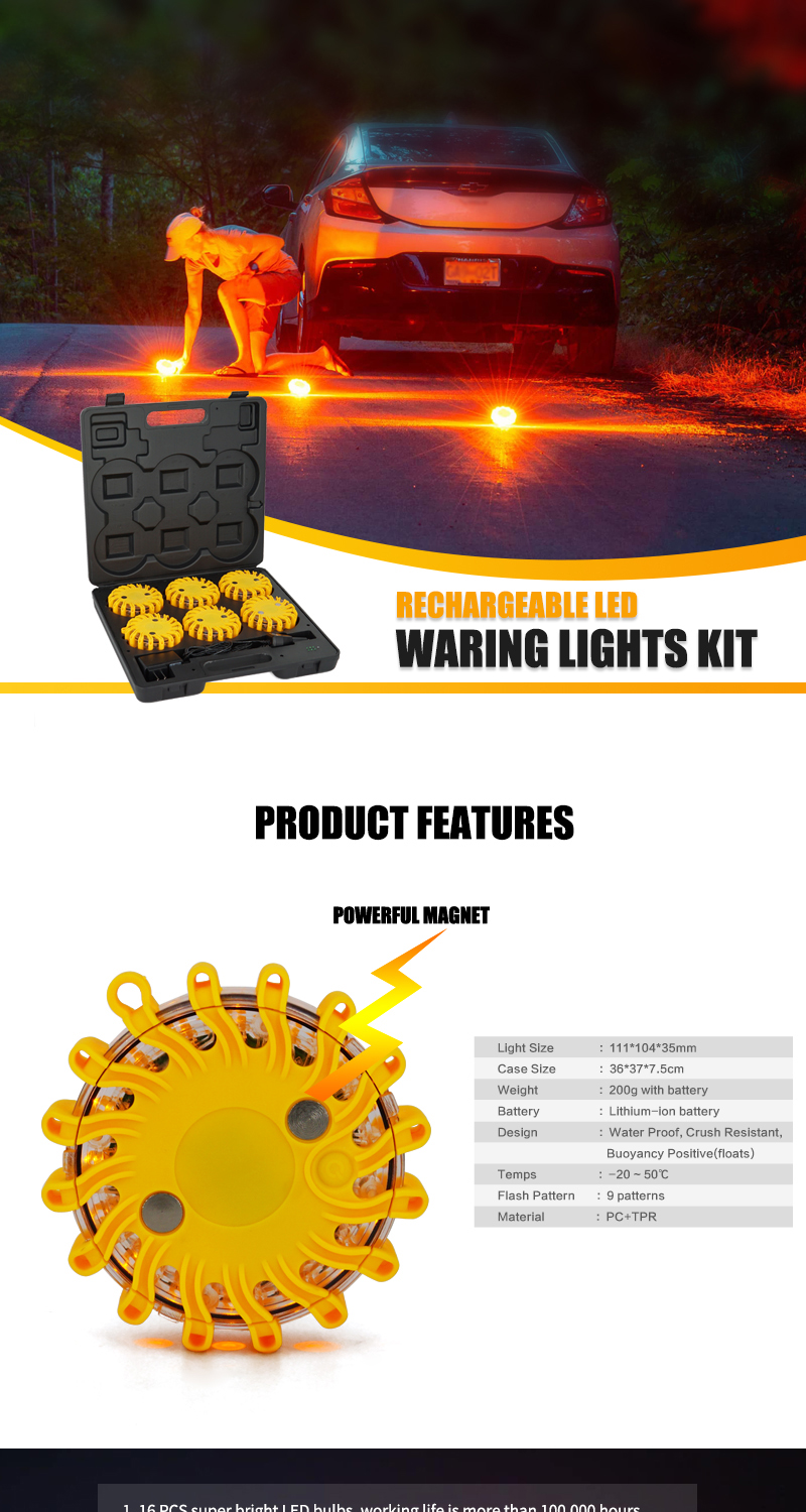 Rechargeable LED Waring Lights Kit LED Magnetic Emergency Light Safety Flare