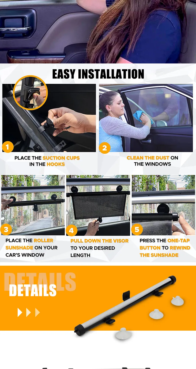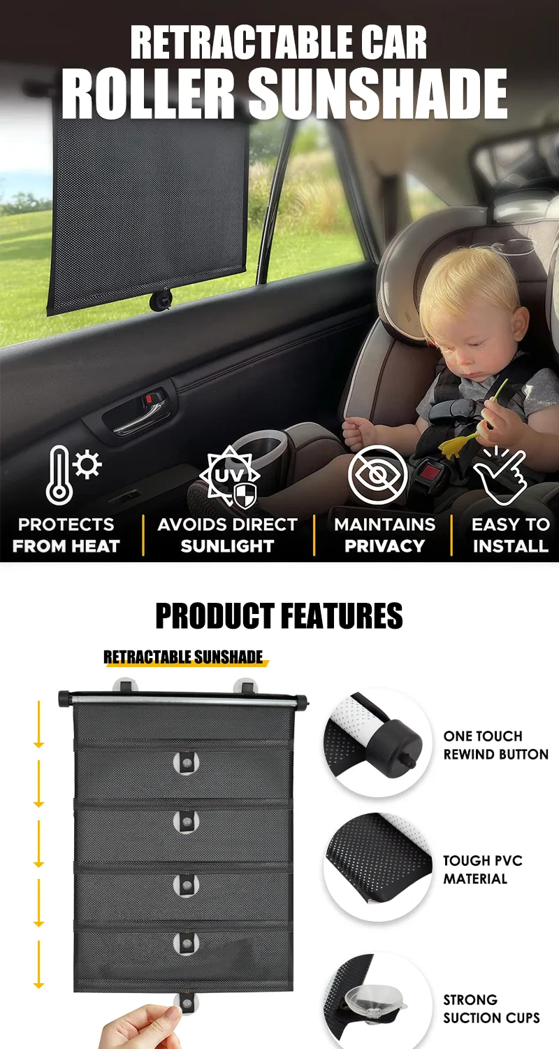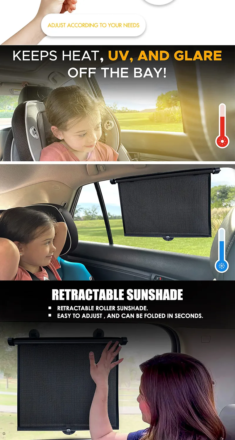 Retractable Car Roller Sunshade Car Window Shades for UV and Sun Glare Protection
