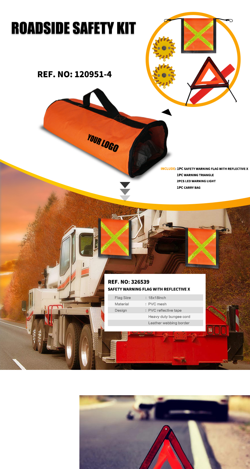 Roadside Safety kit Safety Flag Warning Kit with Zipper Bag