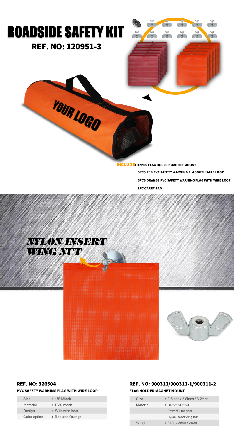 Roadside Safety kit Safety Flag Warning Kit with Zipper Bag