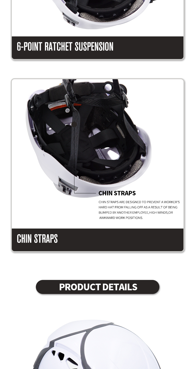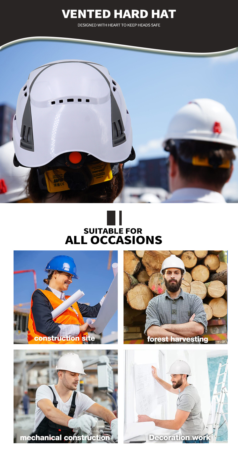 Security Personal Protective Vented Work Safety Helmet Hard Hat with 6-point Adjustable Ratchet Suspension