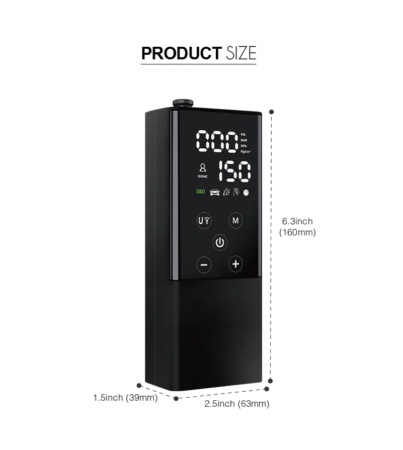 Wireless Cordless Rechargeable Digital Display Tyre Compressor Tire Inflator for Car/Motorbike/Bike/Balls