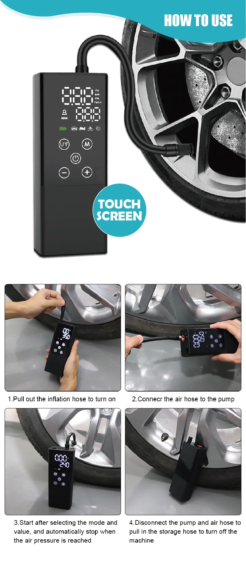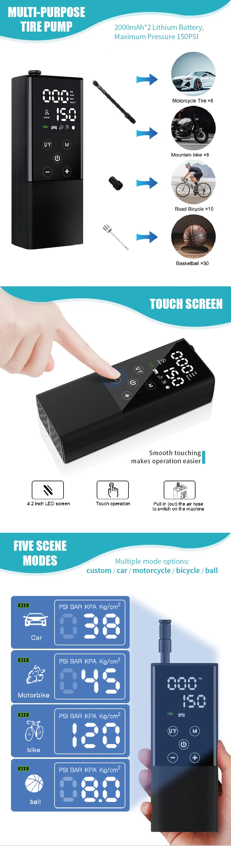 With LED light, preset pressure and auto stop