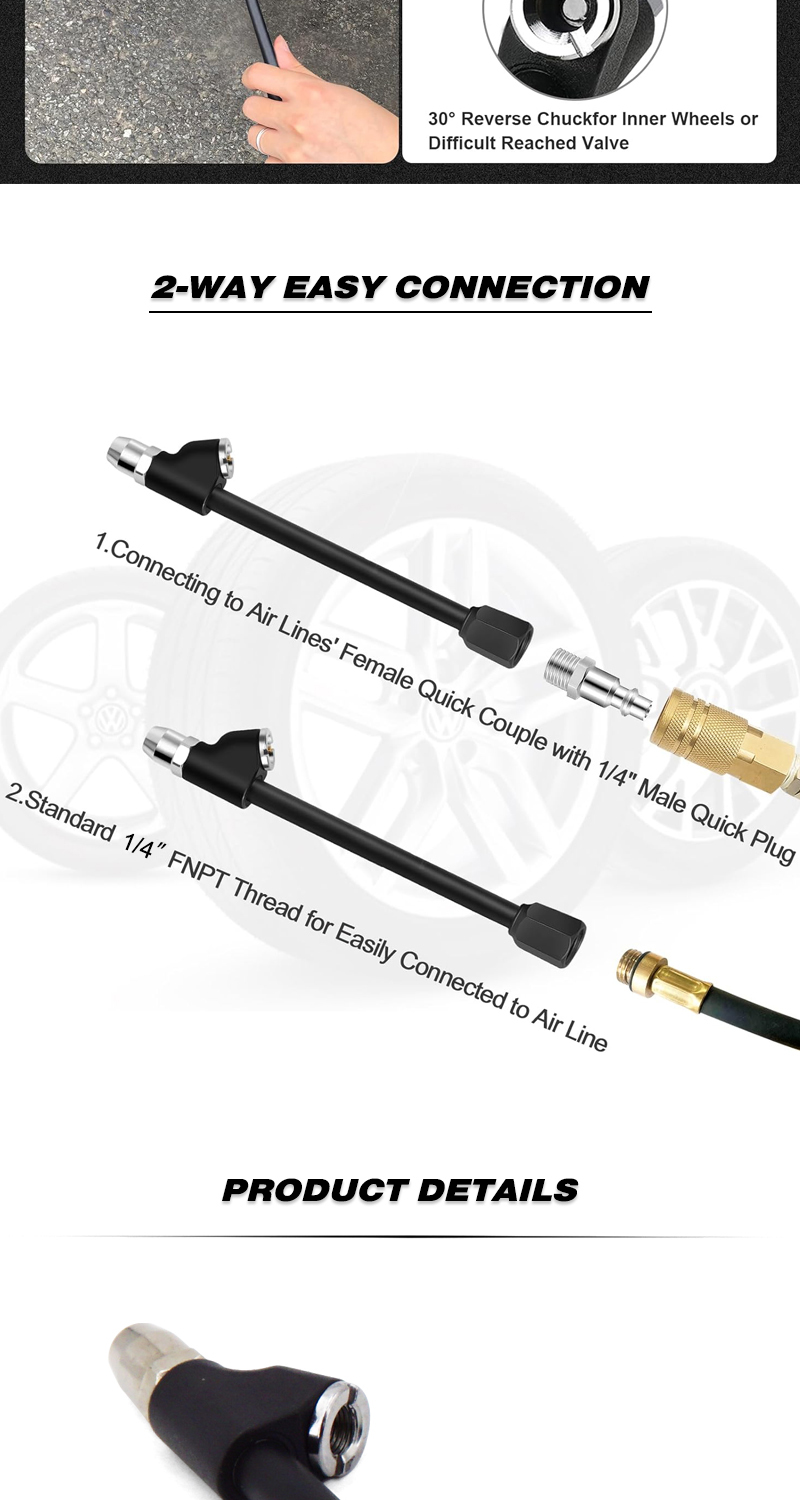 1/4" FNPT Dual Head Air Chuck with 2-Way Connect Tire Chuck