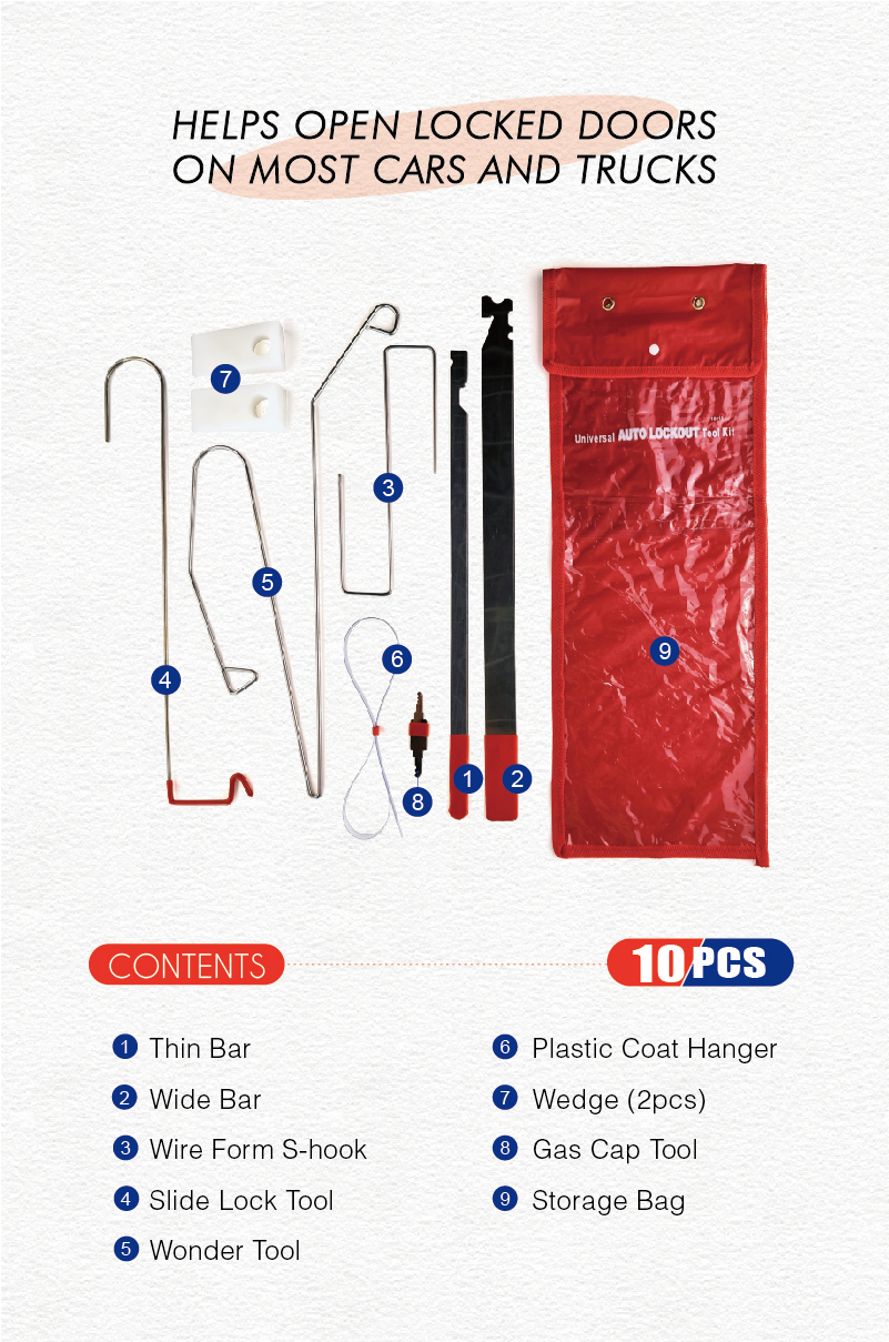 10 pieces Universal Auto Lockout Tool Kit Car Unlock Door Tools Open Tool Kit on Most Cars and Trucks