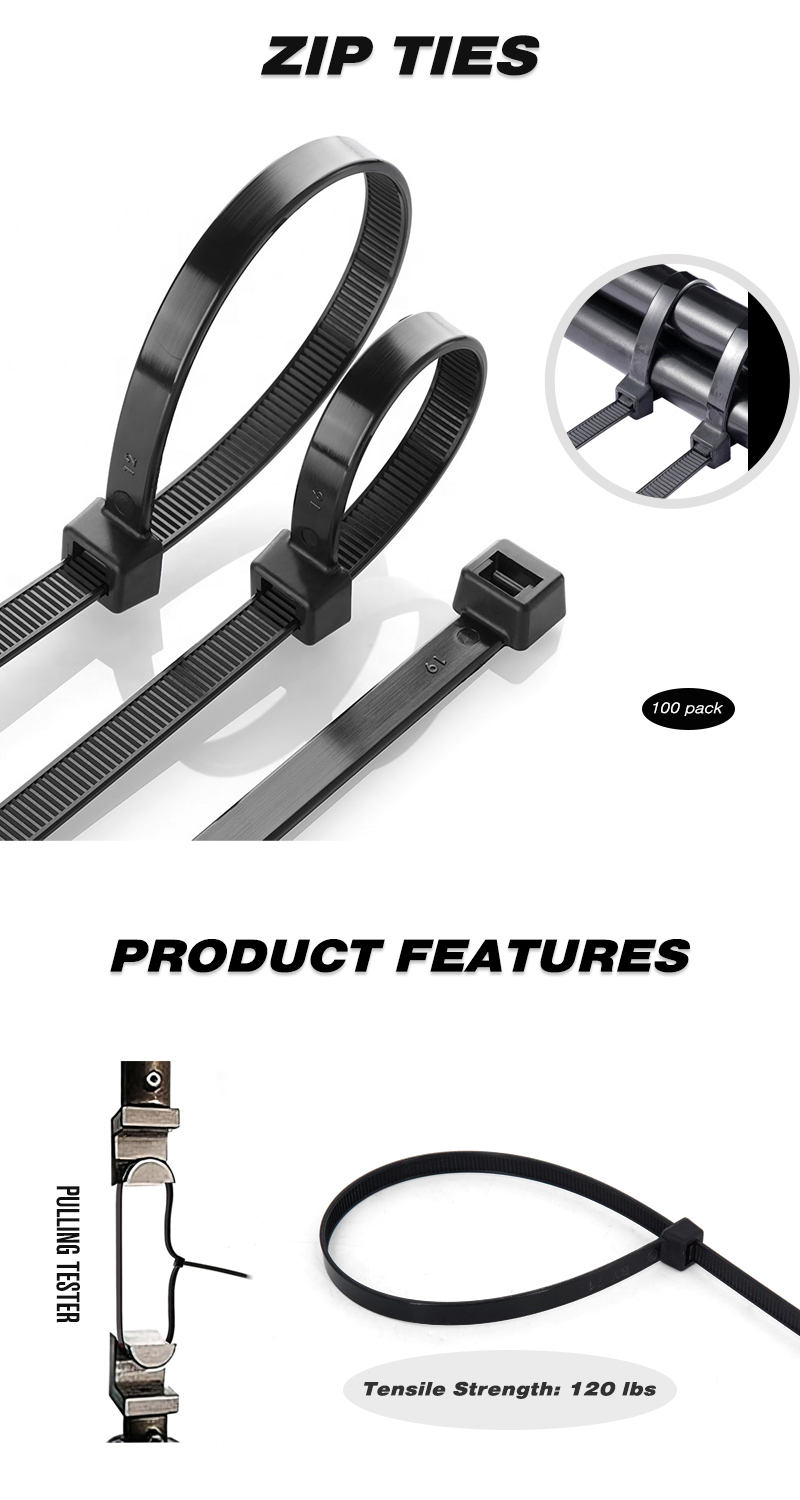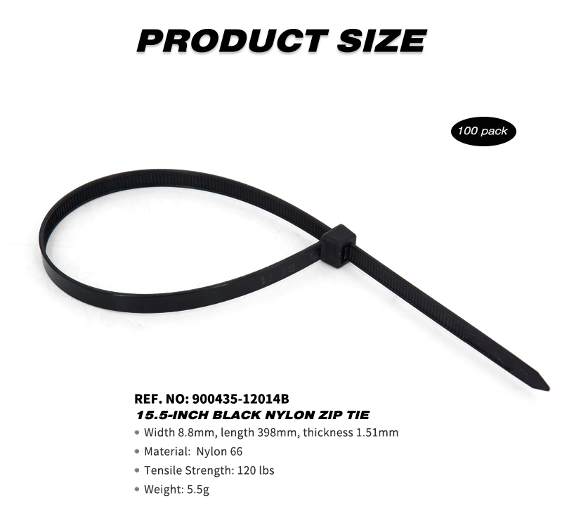 100 Pieces Heavy Duty 120lbs 15.5-inch Black Nylon Zip Ties Industrial Strength Cable Ties