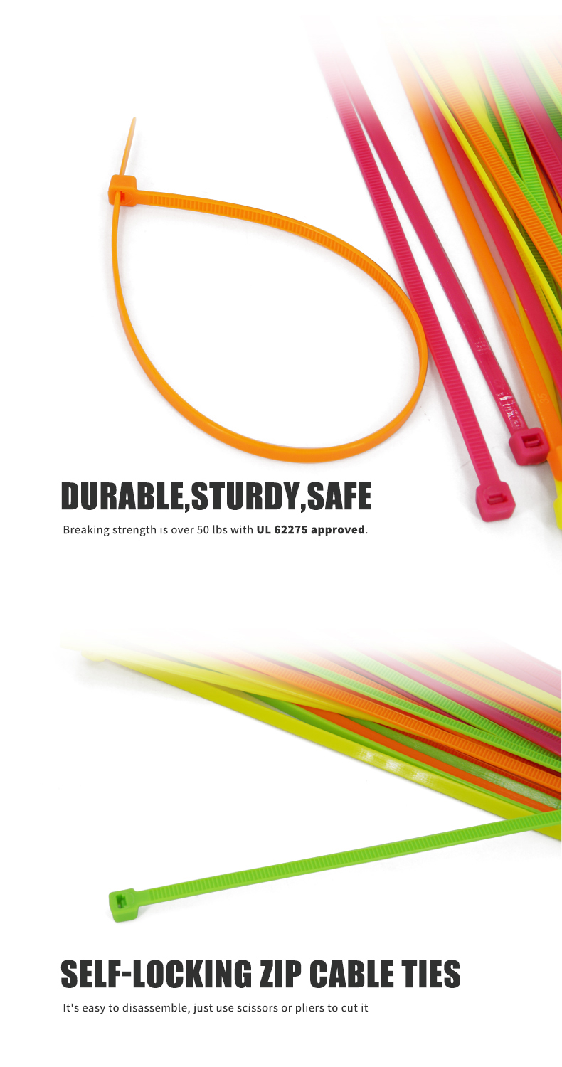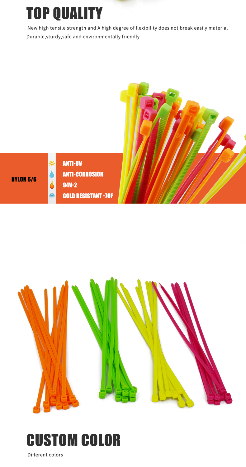 Colored Nylon 6/6 Zip Ties 50 lbs Strength Multi-Purpose Cable Ties Bag of 100pcs
