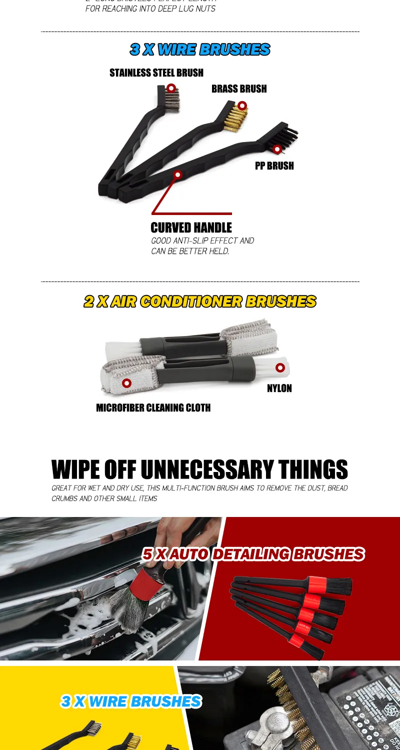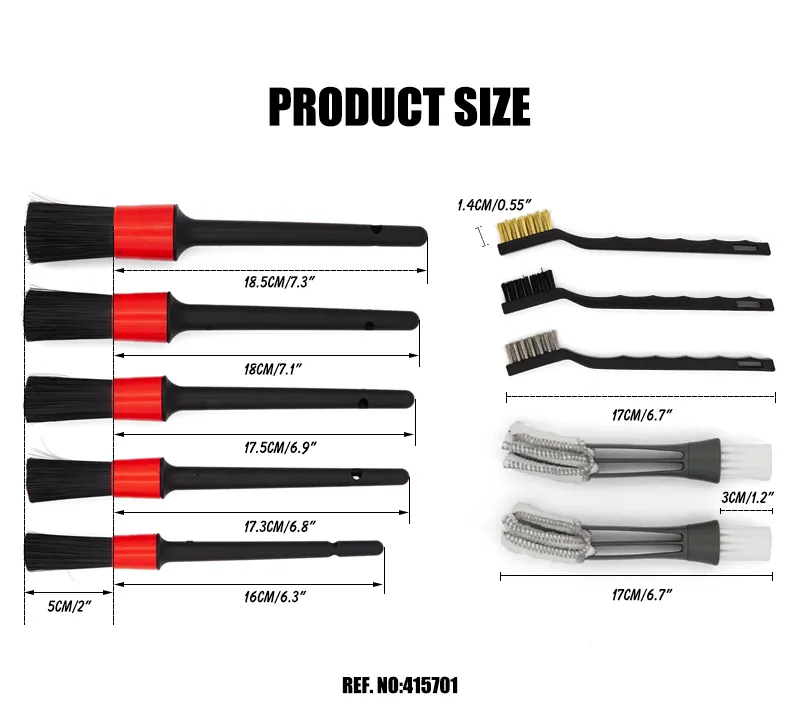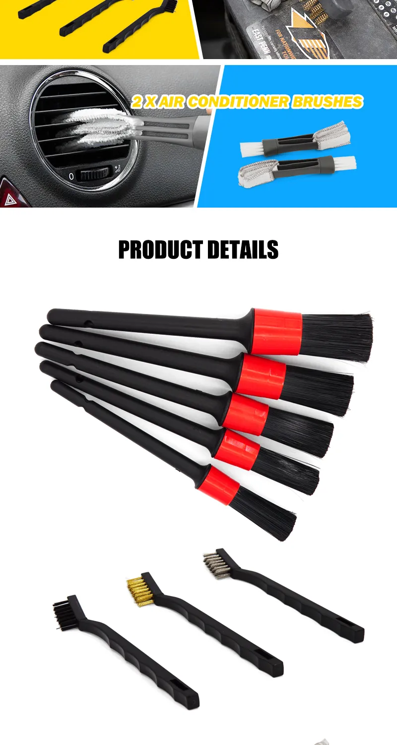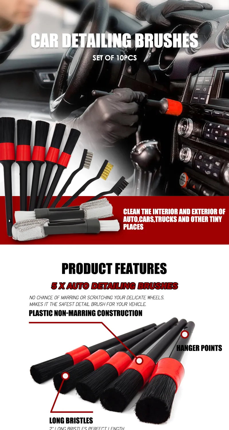 10pcs Car Detailing Wash Long Soft PP Bristle Brushes Set for Cleaning