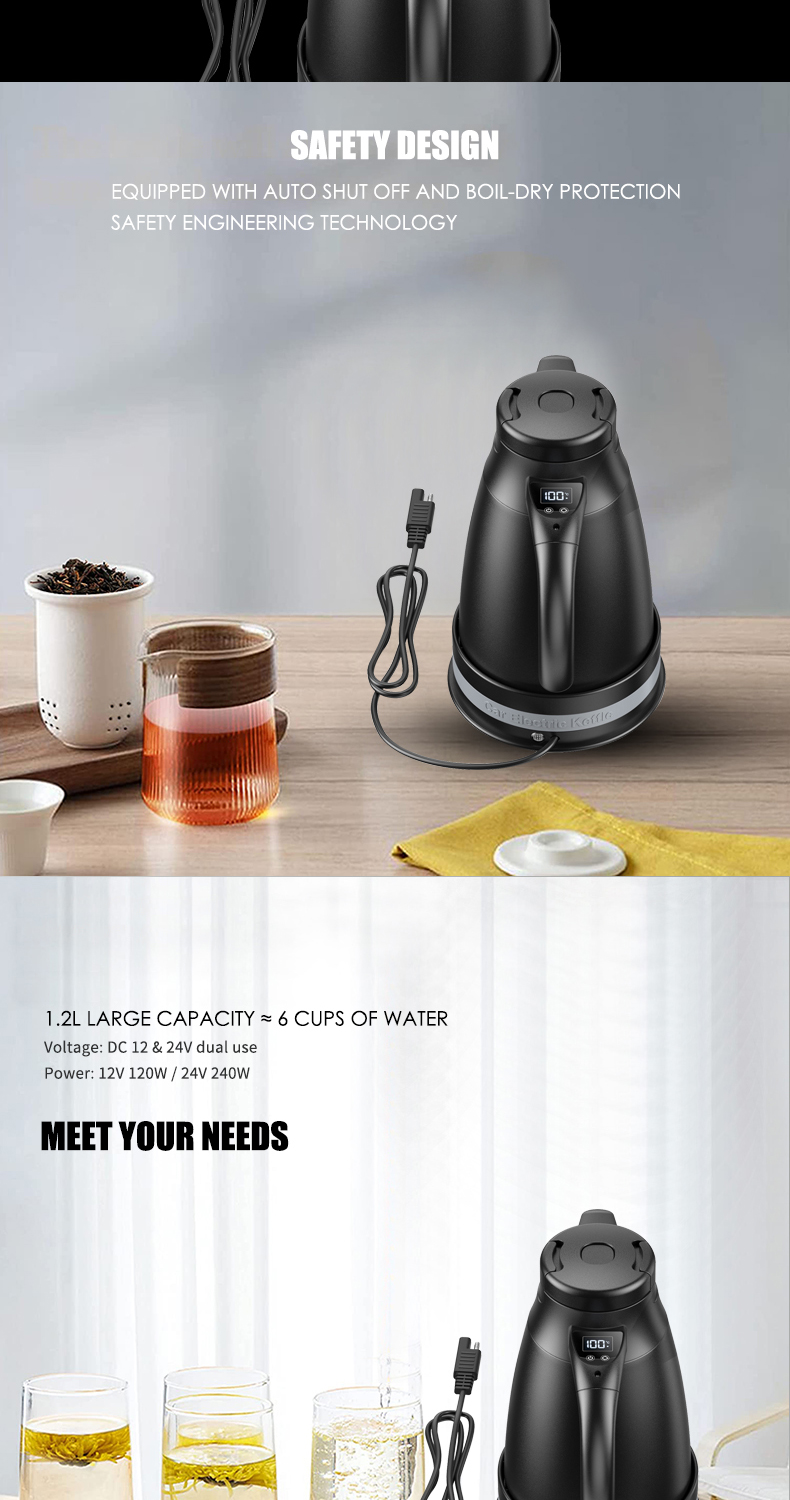 12v/24v Portable 1.2L Car Electric Boiling Hot Water Heater Kettle Boiler for Car