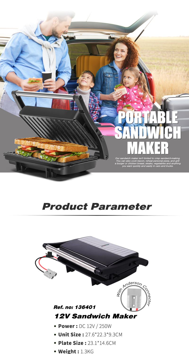 12V 250W Portable Sandwich Maker Non-Stick Coated Plates